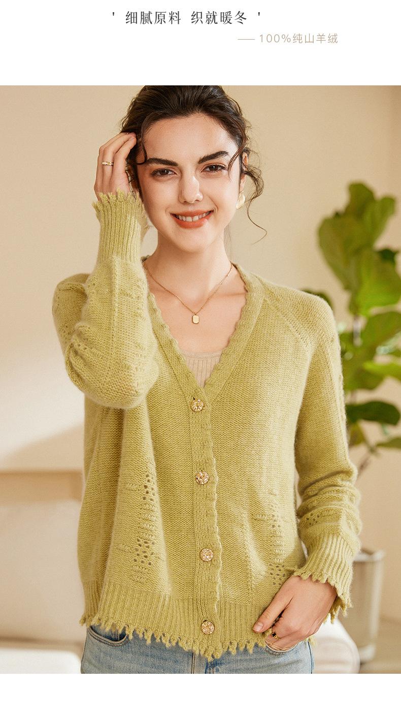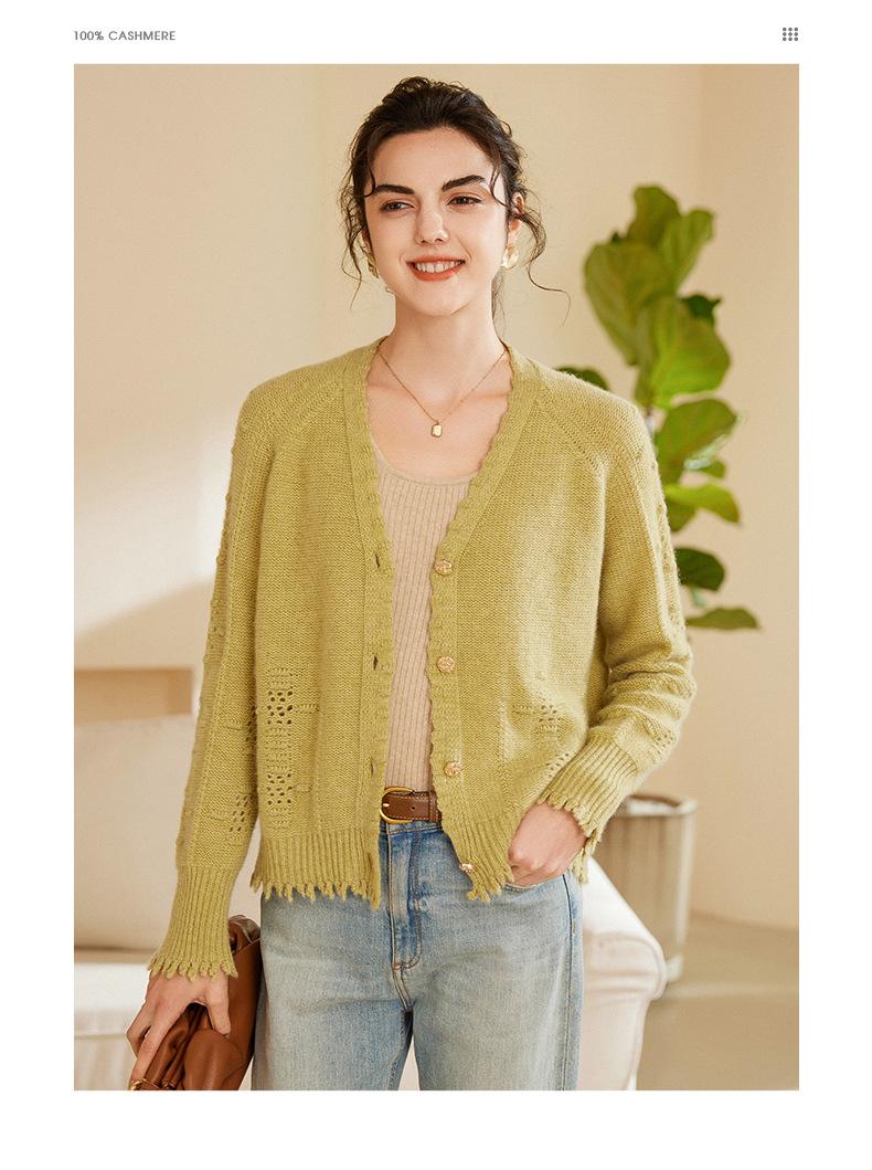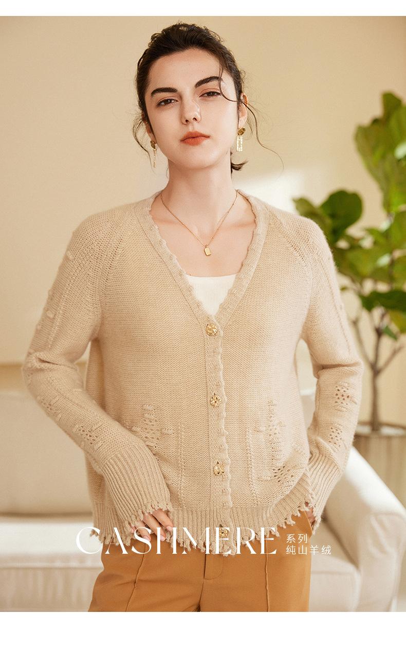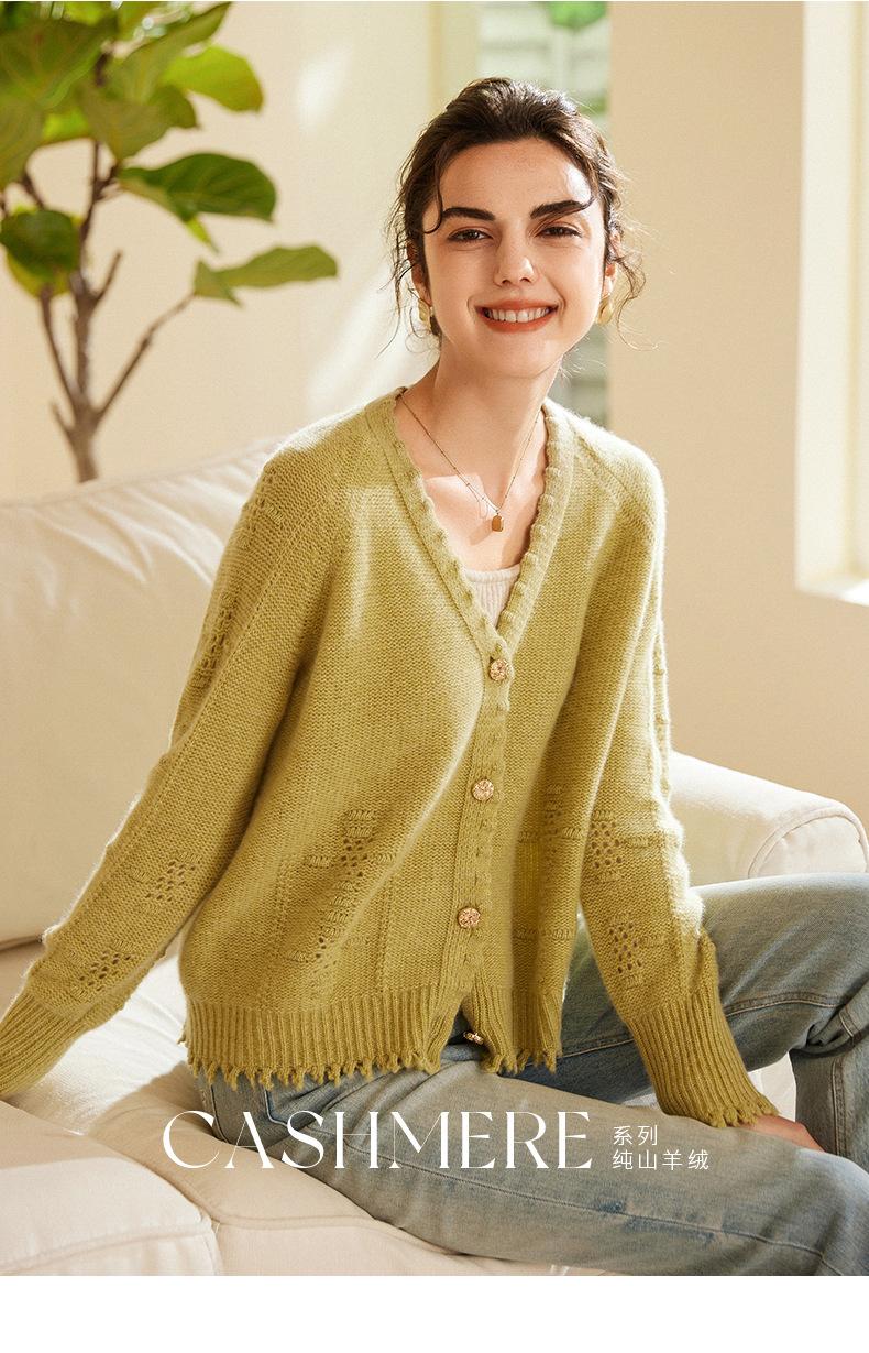 Suéter de Cachemira 100% Pura Otoño e Invierno 2024 Nuevo Suéter de Cachemira Suelto Color Puro Chaqueta Cuello en V Cárdigan con Borlas a la Moda