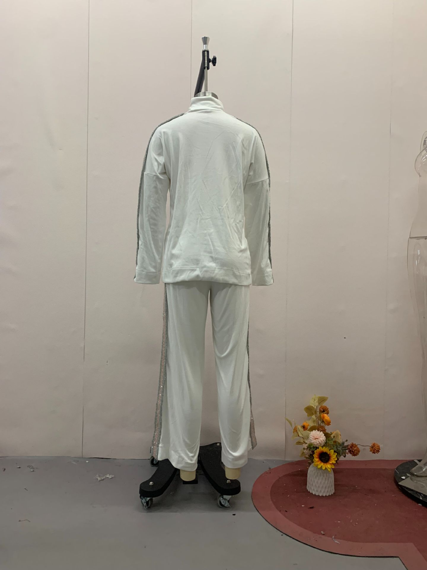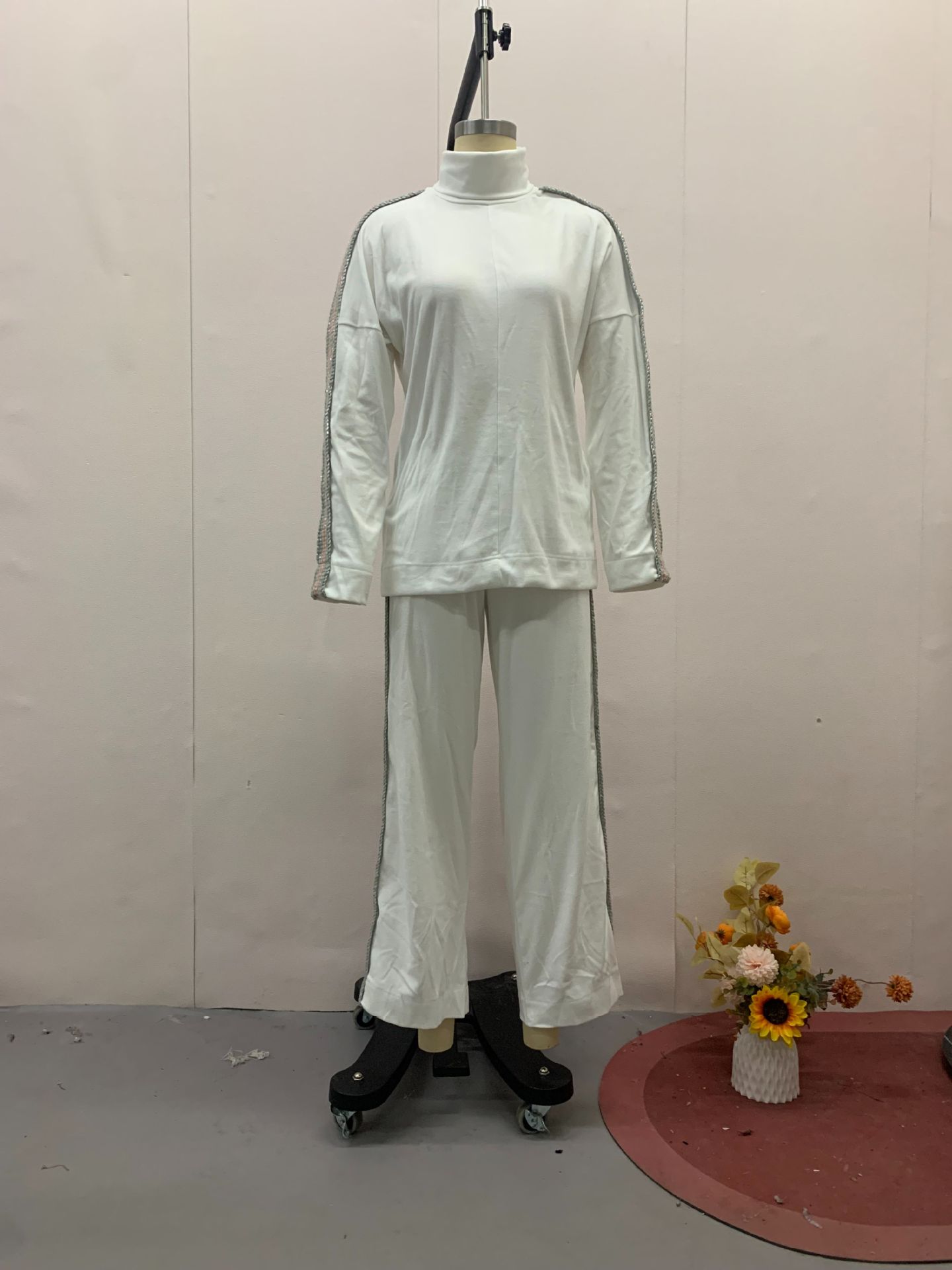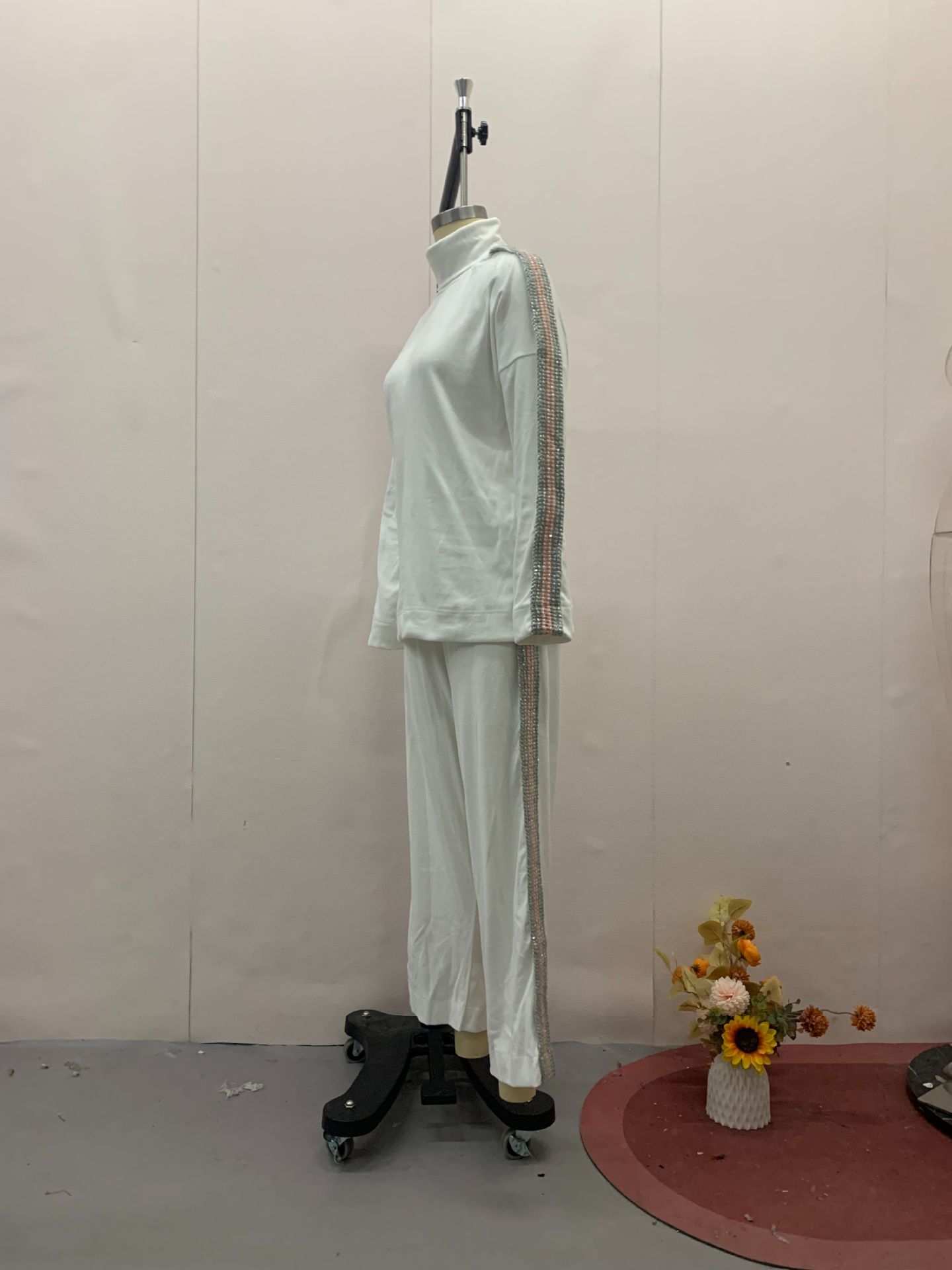 Otoño 2023 nuevo traje de pantalón con ribete de lentejuelas de nicho de moda de cuello alto de estilo europeo y americano transfronterizo de Amazon para mujer
