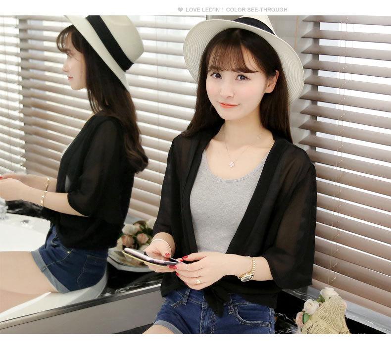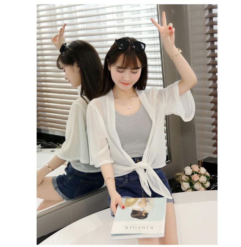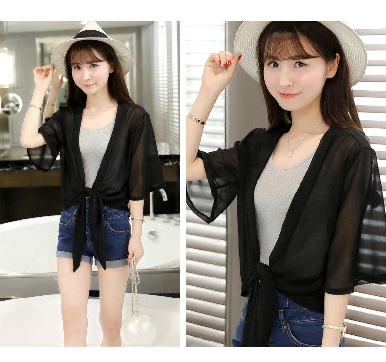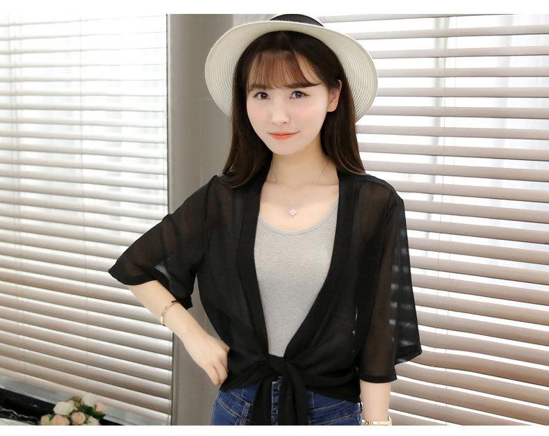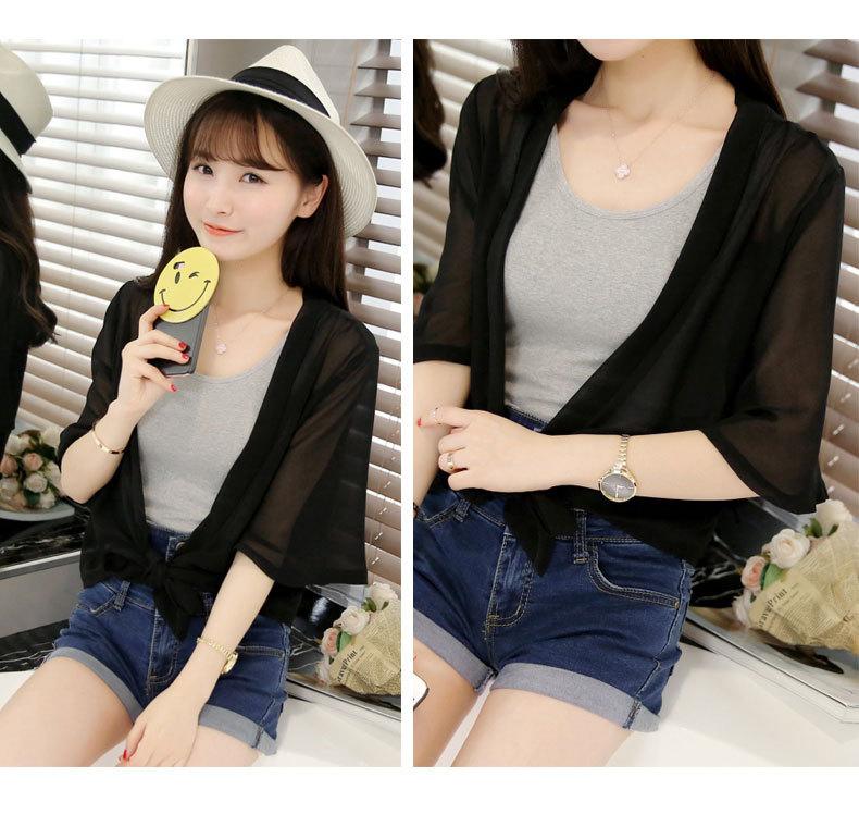 Ropa de Protección Solar de Verano 2025 Cárdigan de Chifón Fino de Verano para Mujer Chal Pequeño Chaqueta Corta Suelta