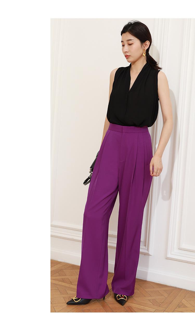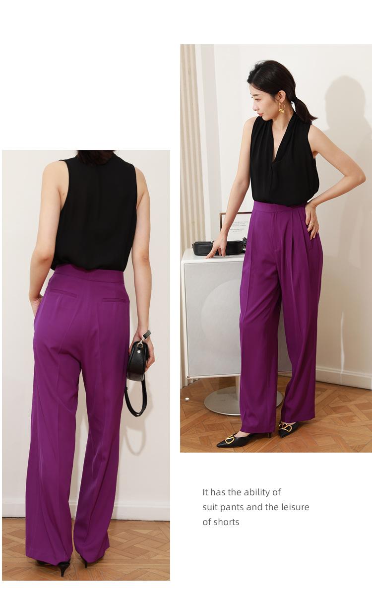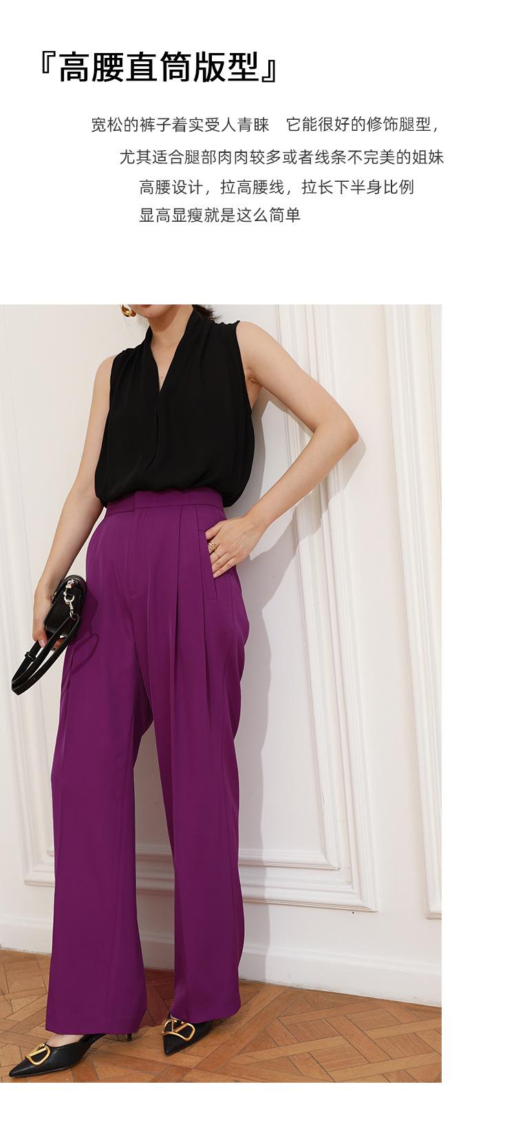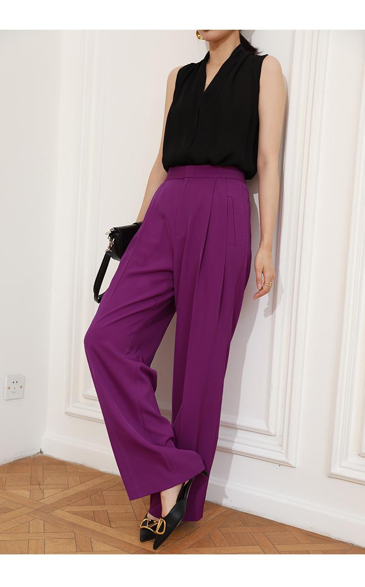 Pantalones elegantes de primavera y verano, color rosa y morado, de cintura alta, drapeados, de pierna recta y ancha, pantalones holgados informales adelgazantes.