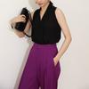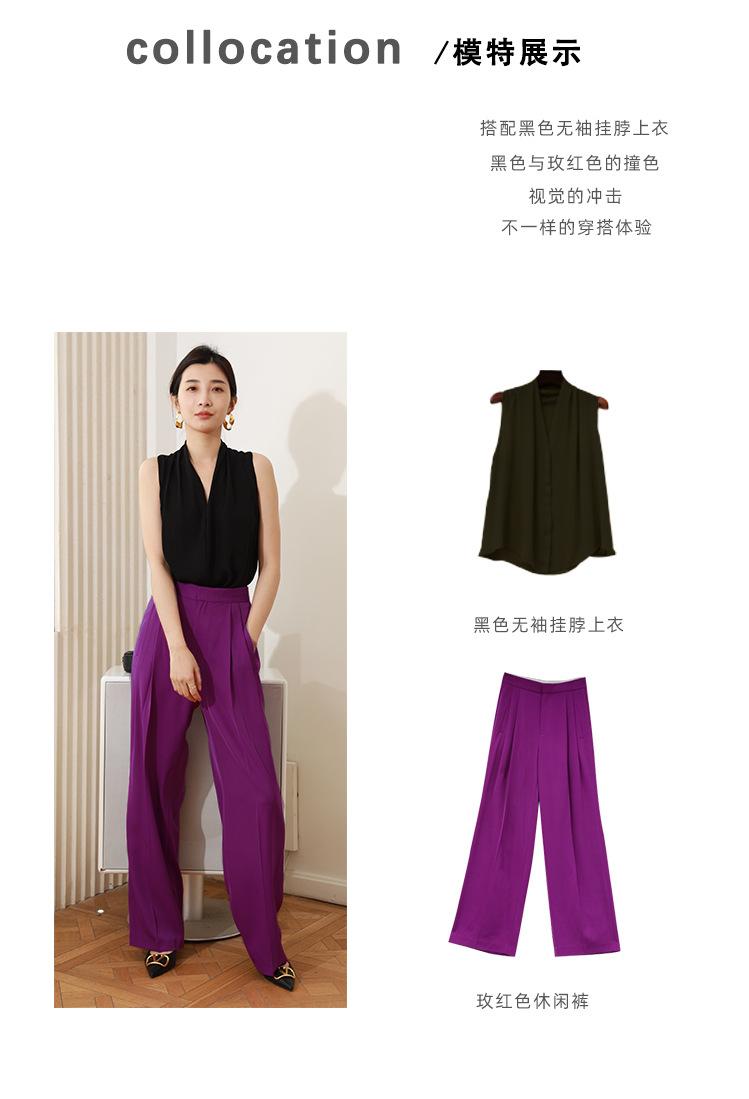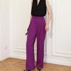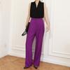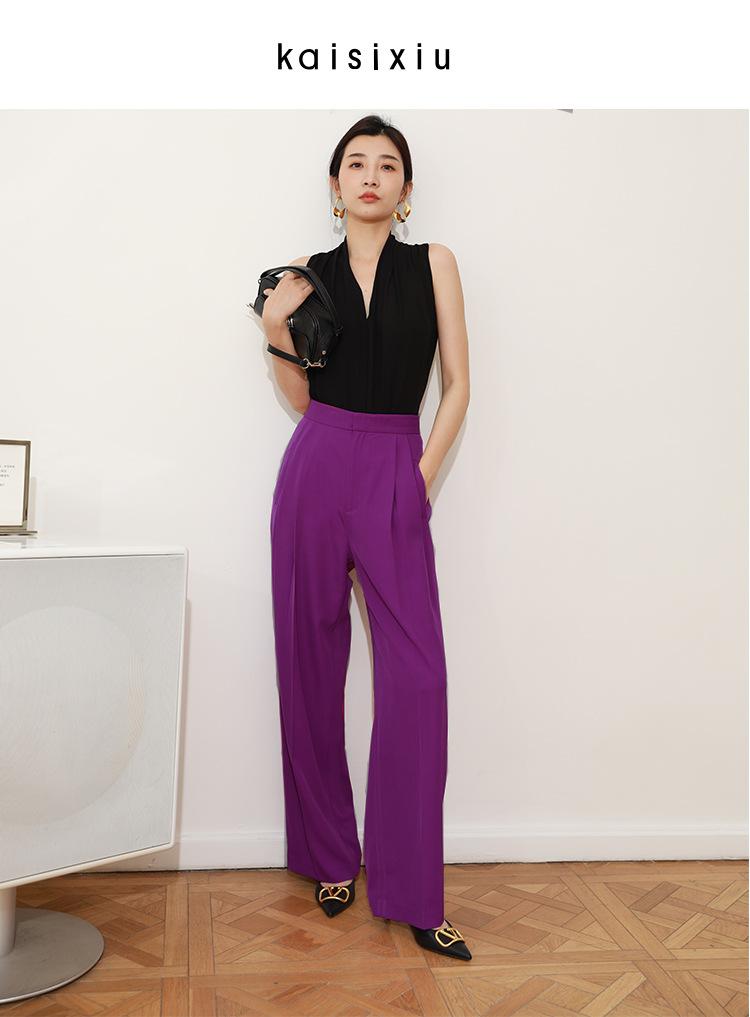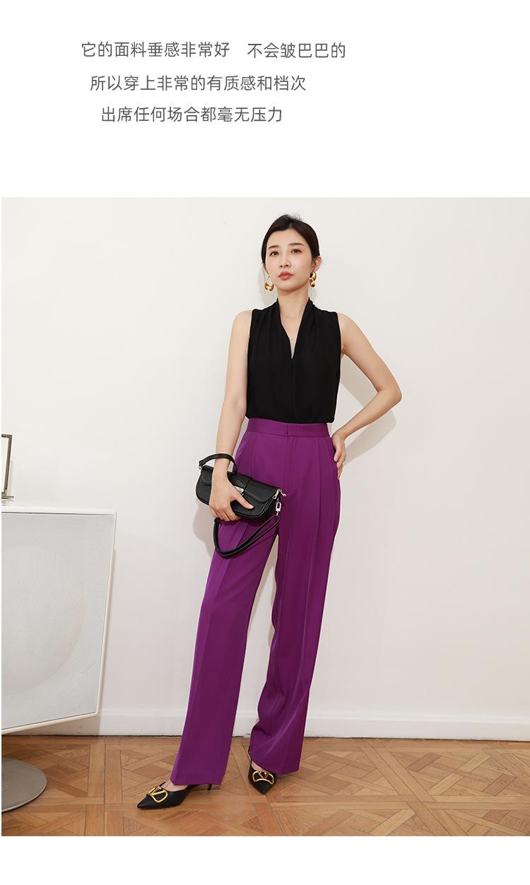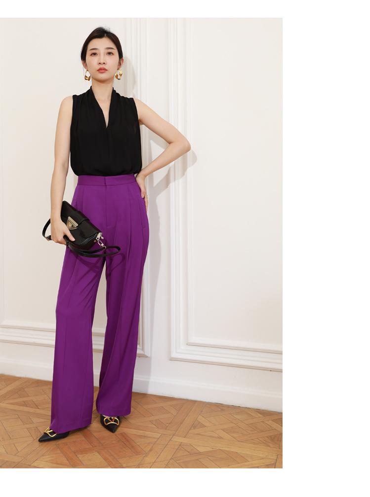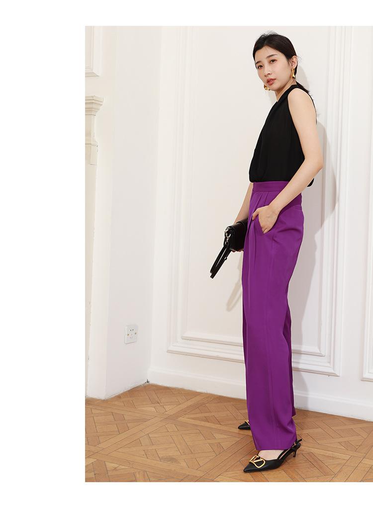 Pantalones elegantes de primavera y verano, color rosa y morado, de cintura alta, drapeados, de pierna recta y ancha, pantalones holgados informales adelgazantes.