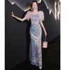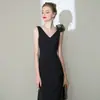 (Liquidación) Vestido de Noche Negro para Reunión Anual para Mujer Banquete Lujo Ligero Nicho Anfitrión Pasarela Vestido de Noche Vestido para Examen de Arte Vocal