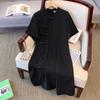 Descripción: Cierre oculto en la espalda. Botones frontales son para decoración, rectos y ensanchados, aberturas en el dobladillo, sin forro, estilo delgado adecuado para el verano, no se decolora