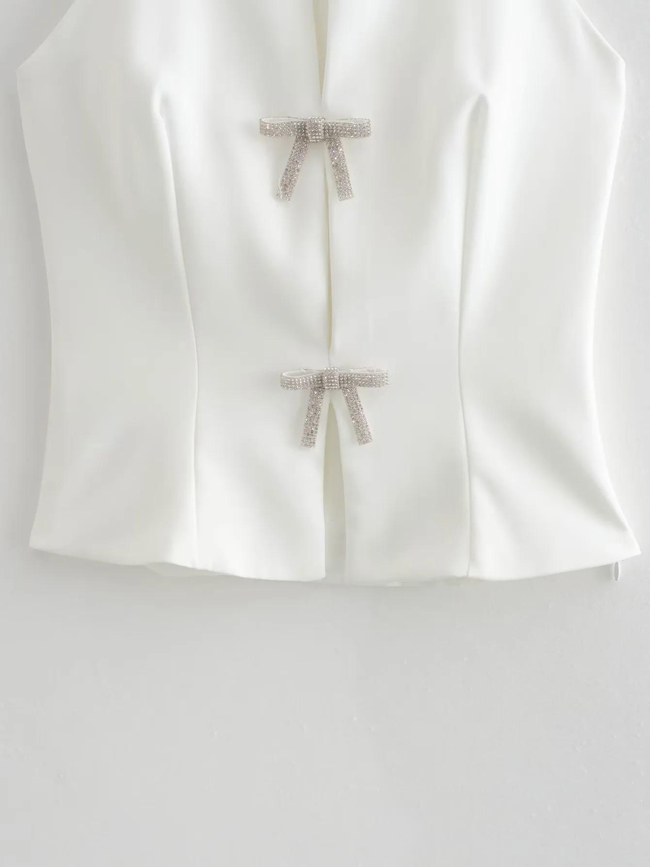 Comercio Exterior Transfronterizo Ropa de Mujer Estilo Europeo y Americano Nuevo Diseño Nicho Francés Joyería de Moda Top Halter Decorado con Lazo