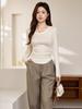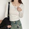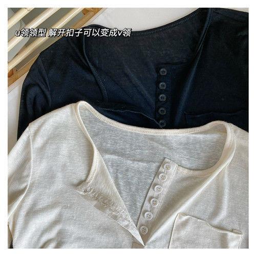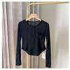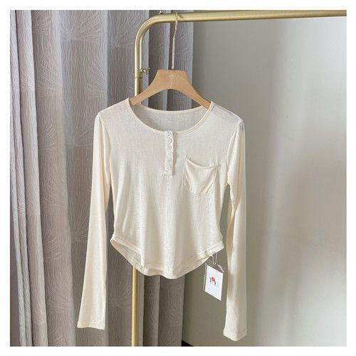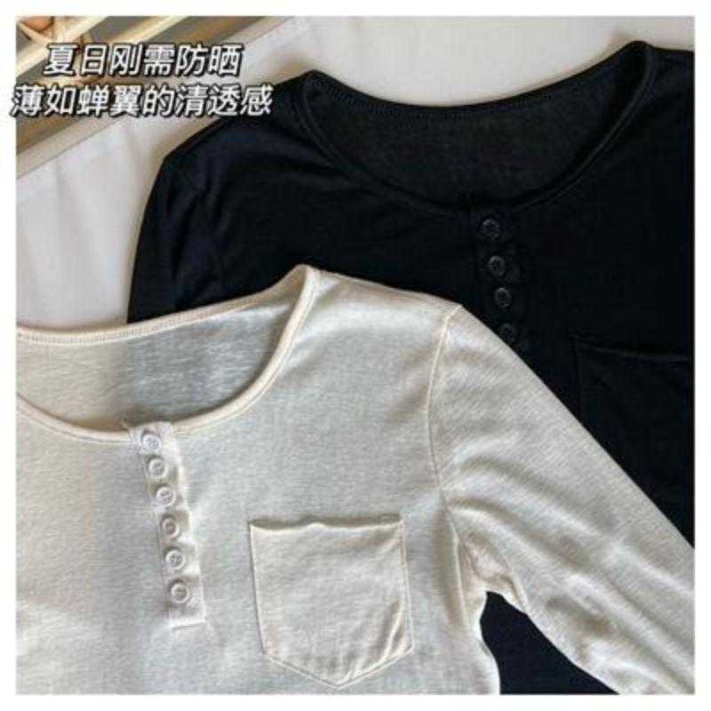 Playera Slim Corta de Manga Larga con Protección Solar Top Primavera y Otoño Ajustada Delgada Camiseta Interior Nuevo Estilo para Mujer