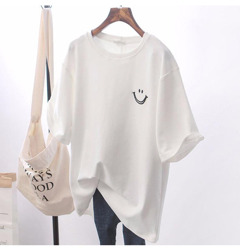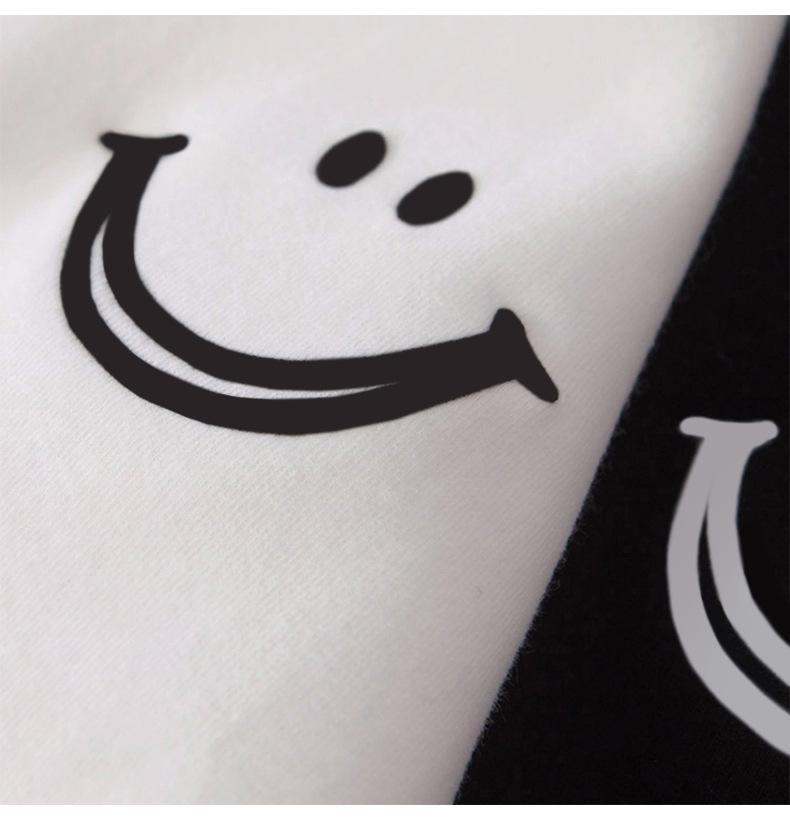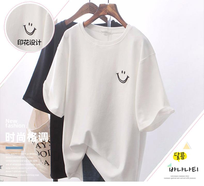 Camiseta de Manga Corta Estampada Sonriente para Mujer 2025 Verano Coreano Nuevo Holgada Top de Longitud Media Moda Versátil Ins Ropa de Mujer