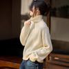 Suéter de punto holgado y perezoso para mujer, de color sólido, 100 % cachemira pura con solapa alta para otoño e invierno