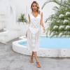 Nuevo Primavera y Verano 2025 Exportación Amazon Transfronterizo Camisa de Playa Suelta Empalmada Twist Recorte Vestido Largo