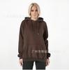 Sudadera gruesa con forro polar de primavera y otoño para mujer, chaqueta holgada con capucha para todo tipo de combinaciones, edición de red de color liso, top informal, moda transfronteriza para mujer