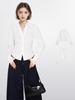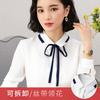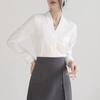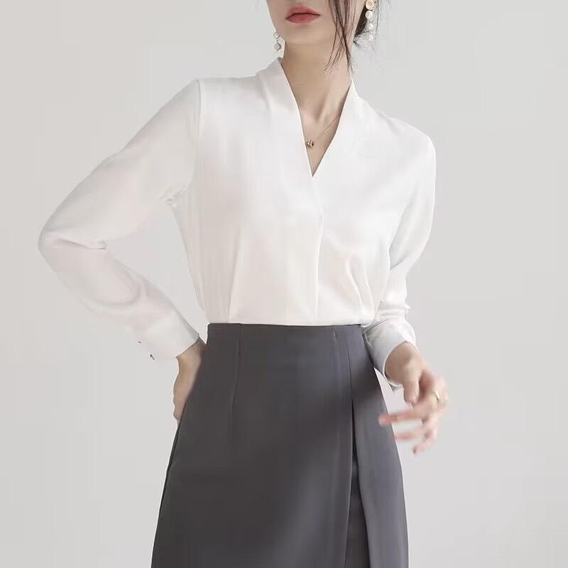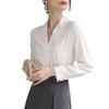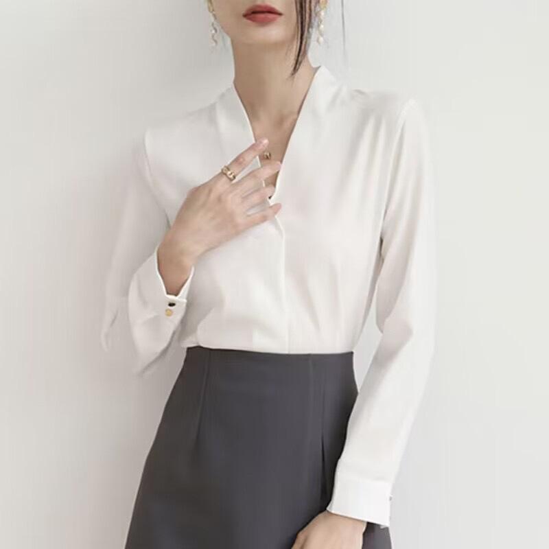 Camisa Blanca sin Cuello para Mujer Anti-arrugas Ropa de Trabajo Top Otoño Sentido de Alta Gama Elegante Gasa Cuello en V Camisa Profesional de Manga Larga
