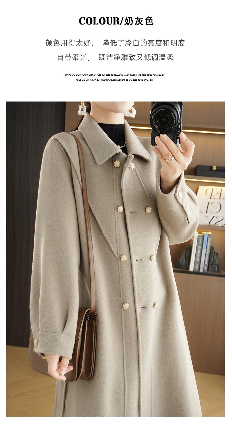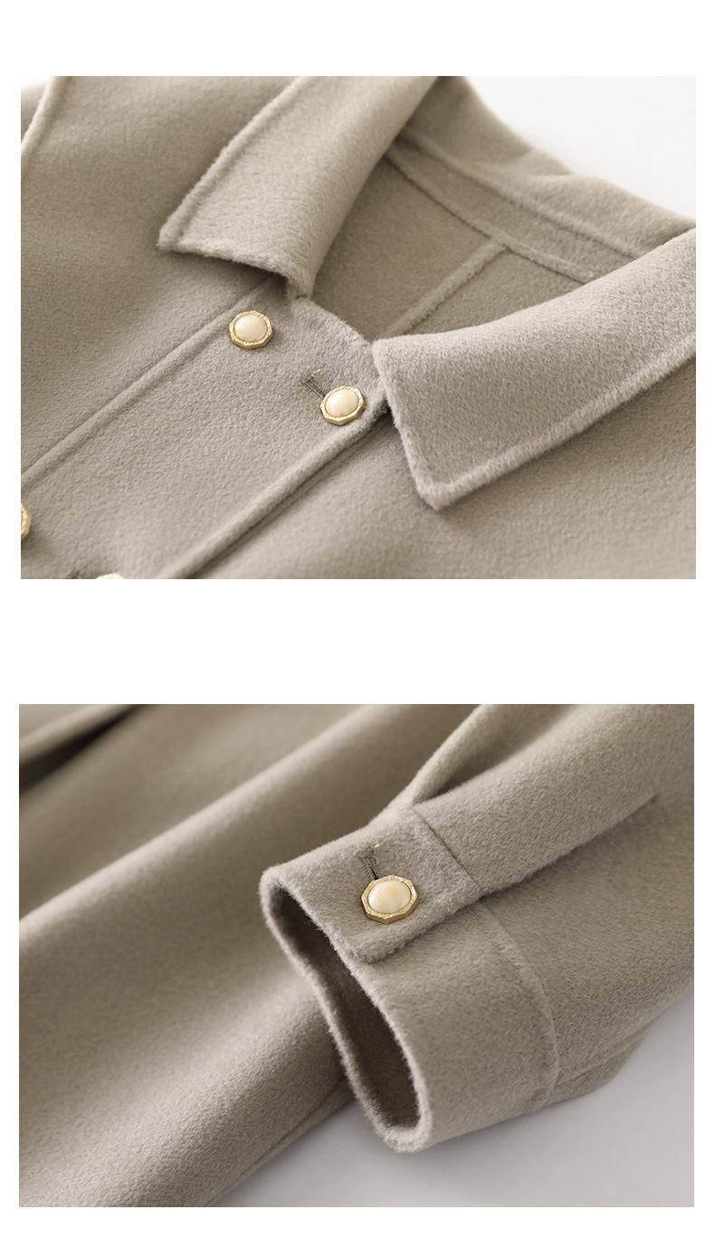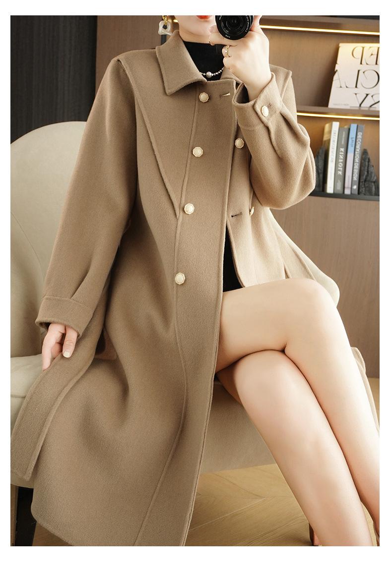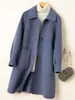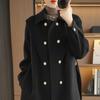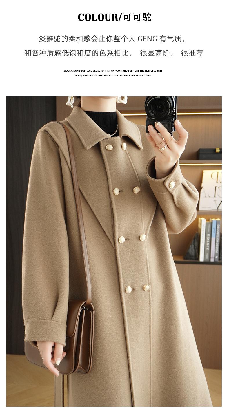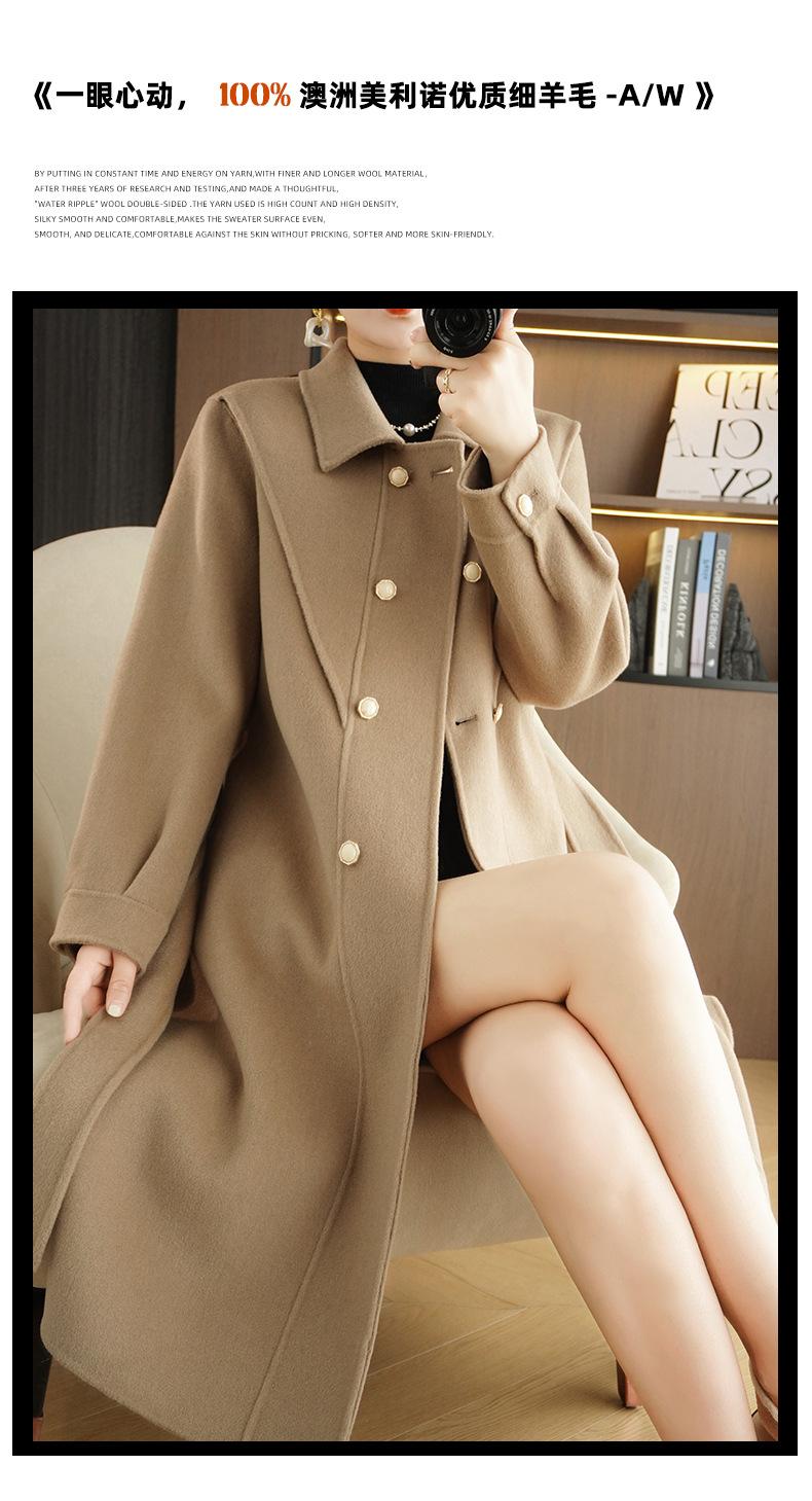 Abrigo de color liso de un solo pecho de longitud media con cuello de traje de lana pura para mujer de estilo coreano otoño e invierno 2023