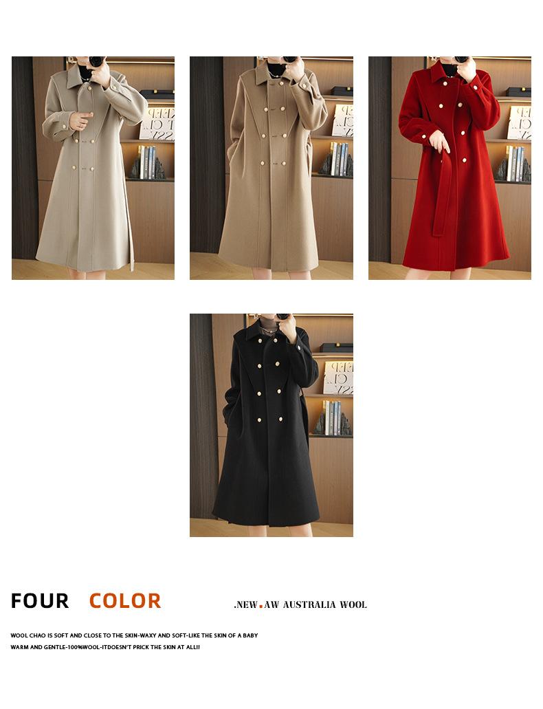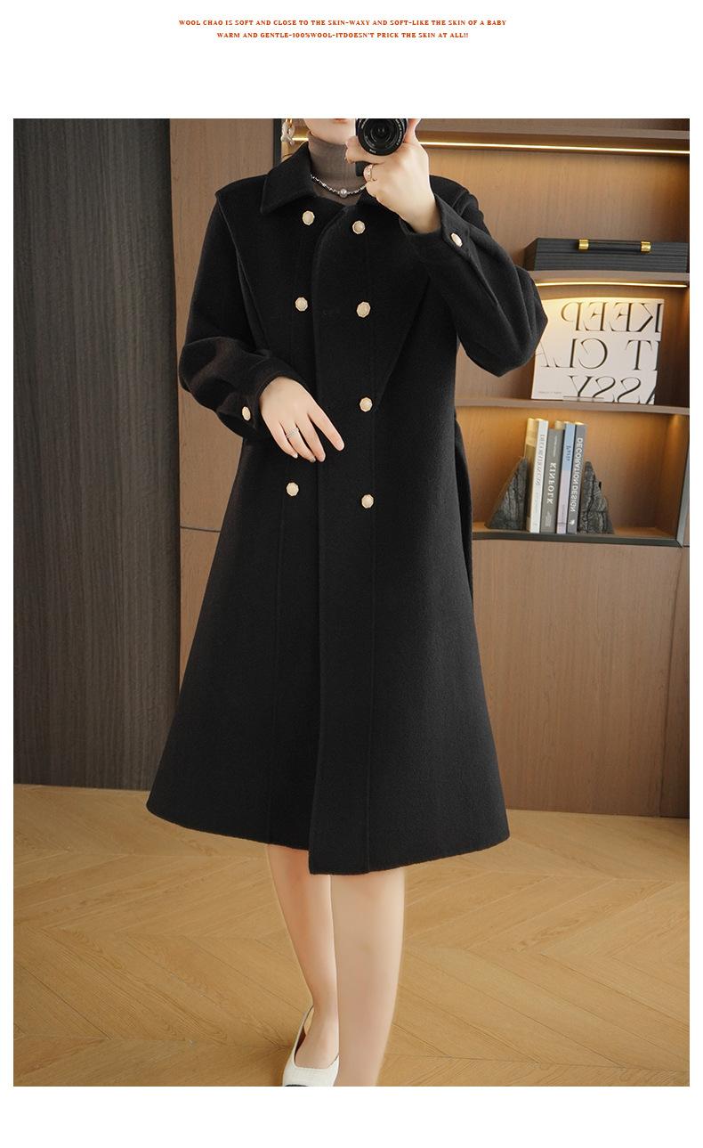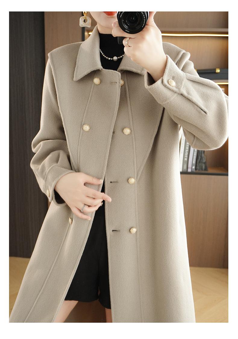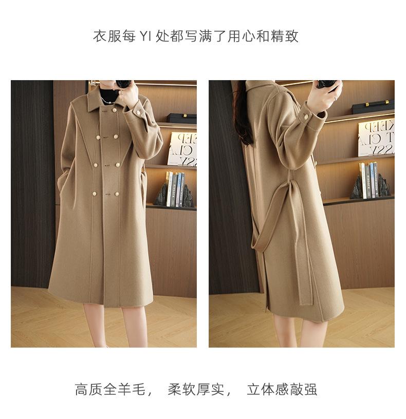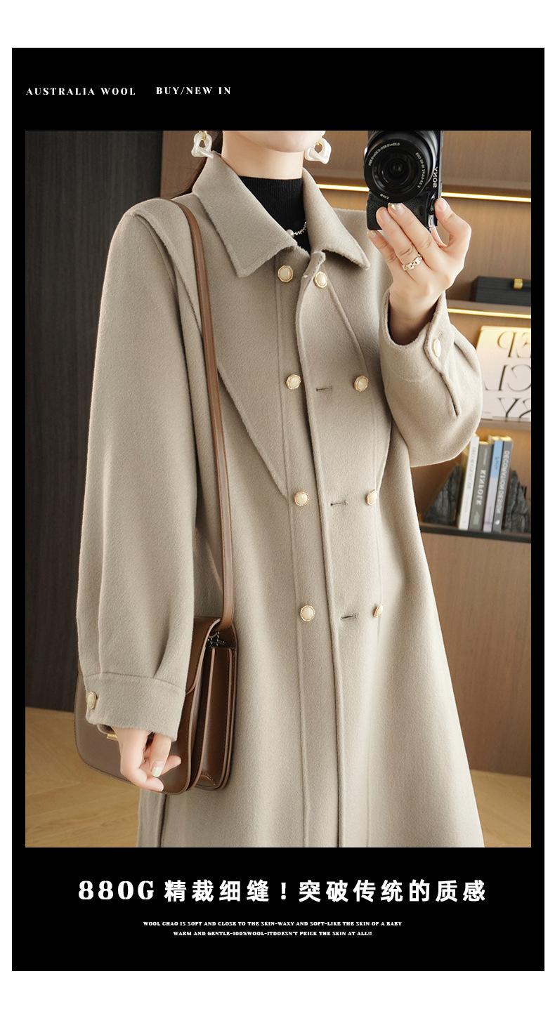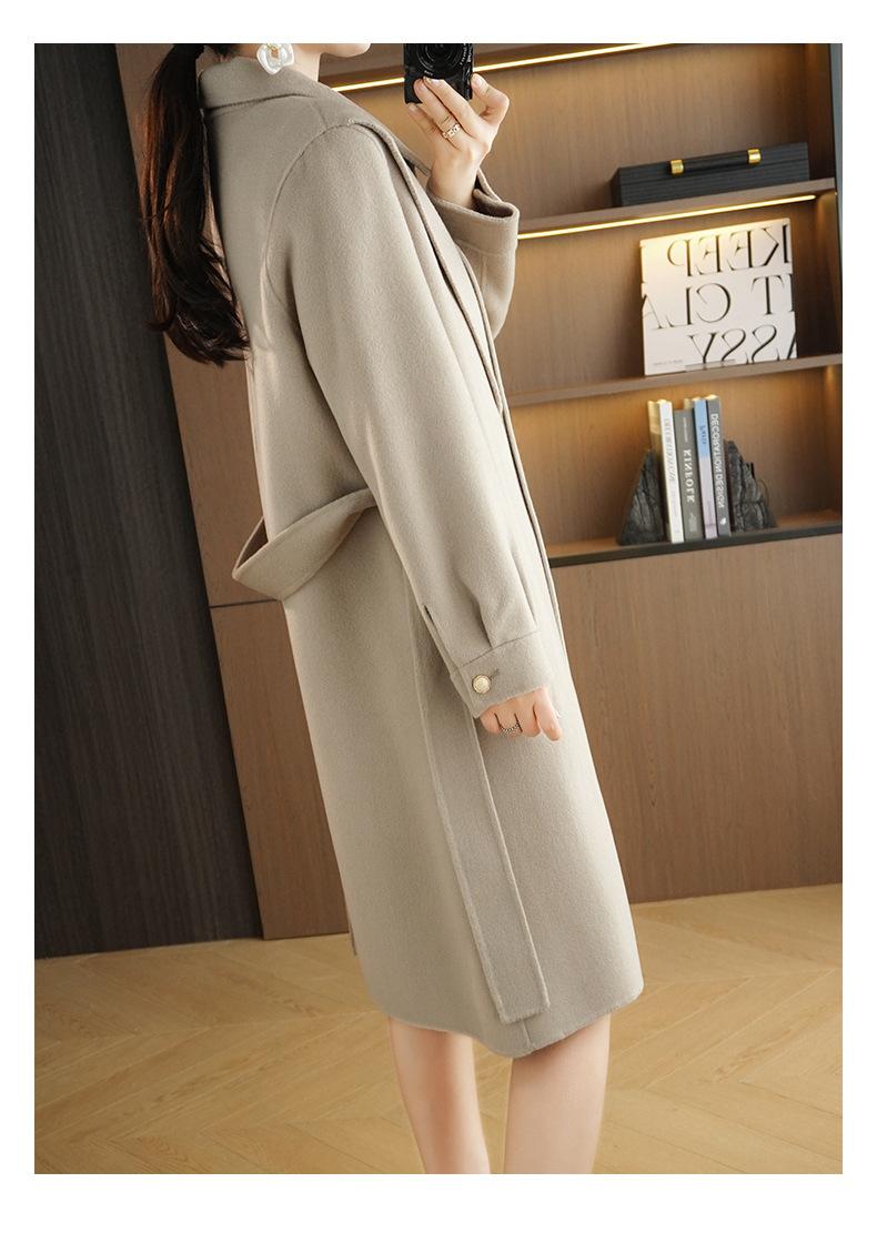 Abrigo de color liso de un solo pecho de longitud media con cuello de traje de lana pura para mujer de estilo coreano otoño e invierno 2023