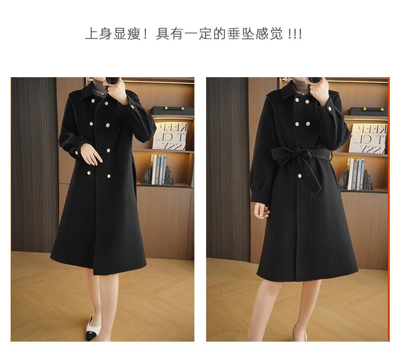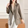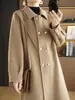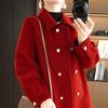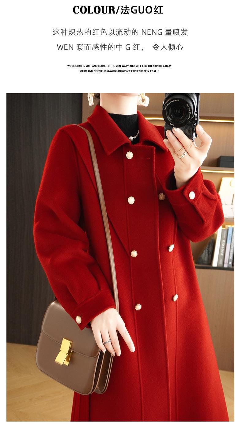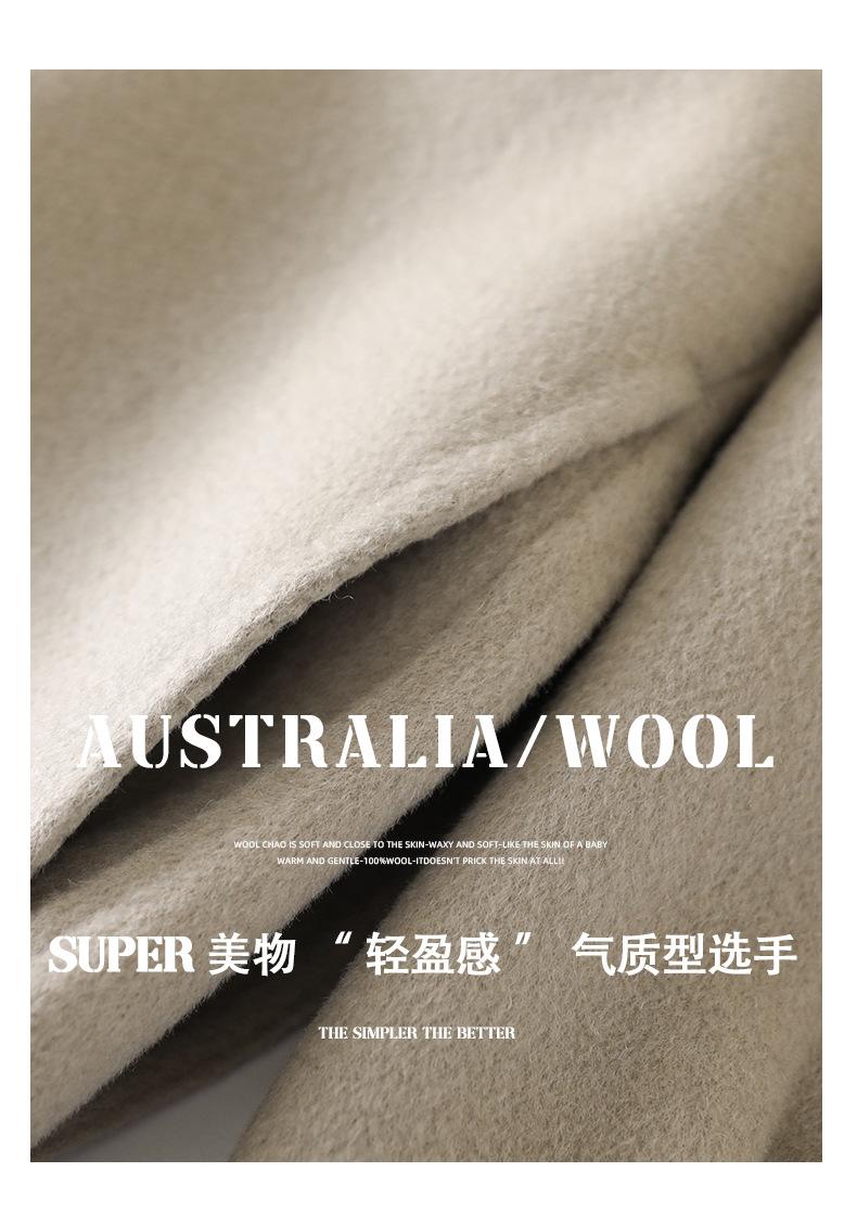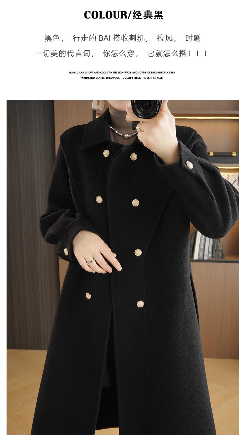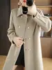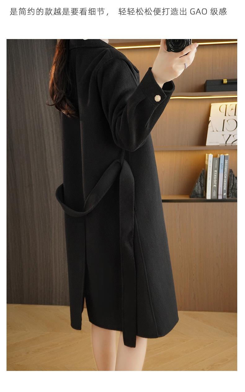 Abrigo de color liso de un solo pecho de longitud media con cuello de traje de lana pura para mujer de estilo coreano otoño e invierno 2023