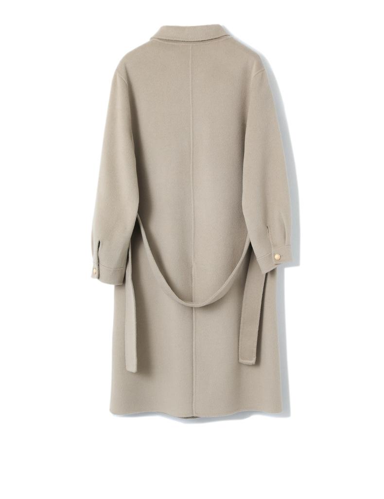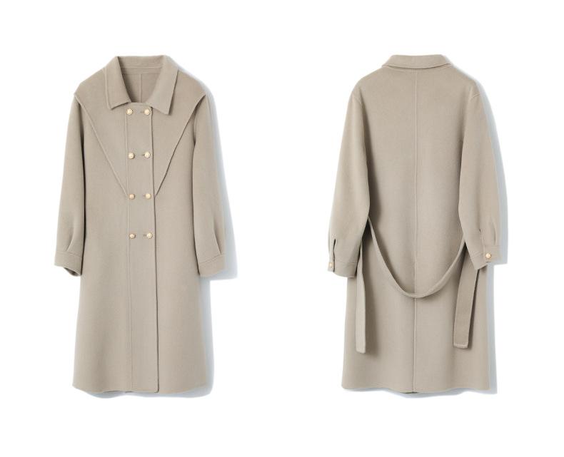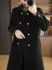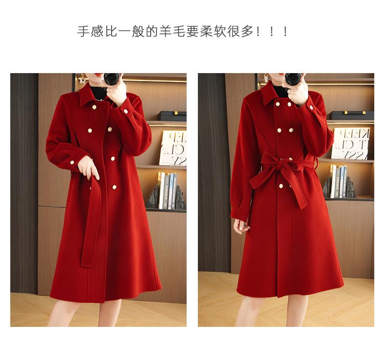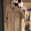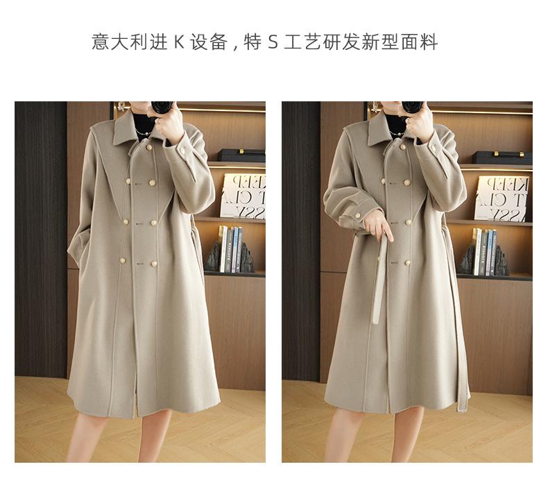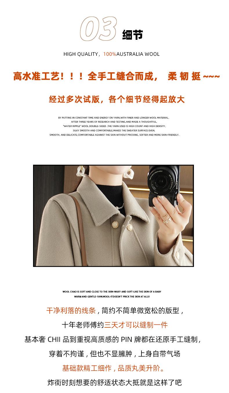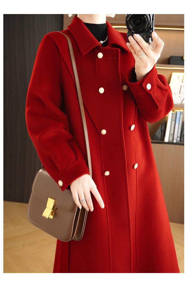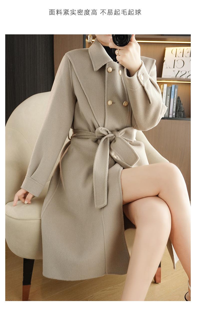 Abrigo de color liso de un solo pecho de longitud media con cuello de traje de lana pura para mujer de estilo coreano otoño e invierno 2023
