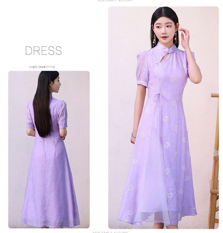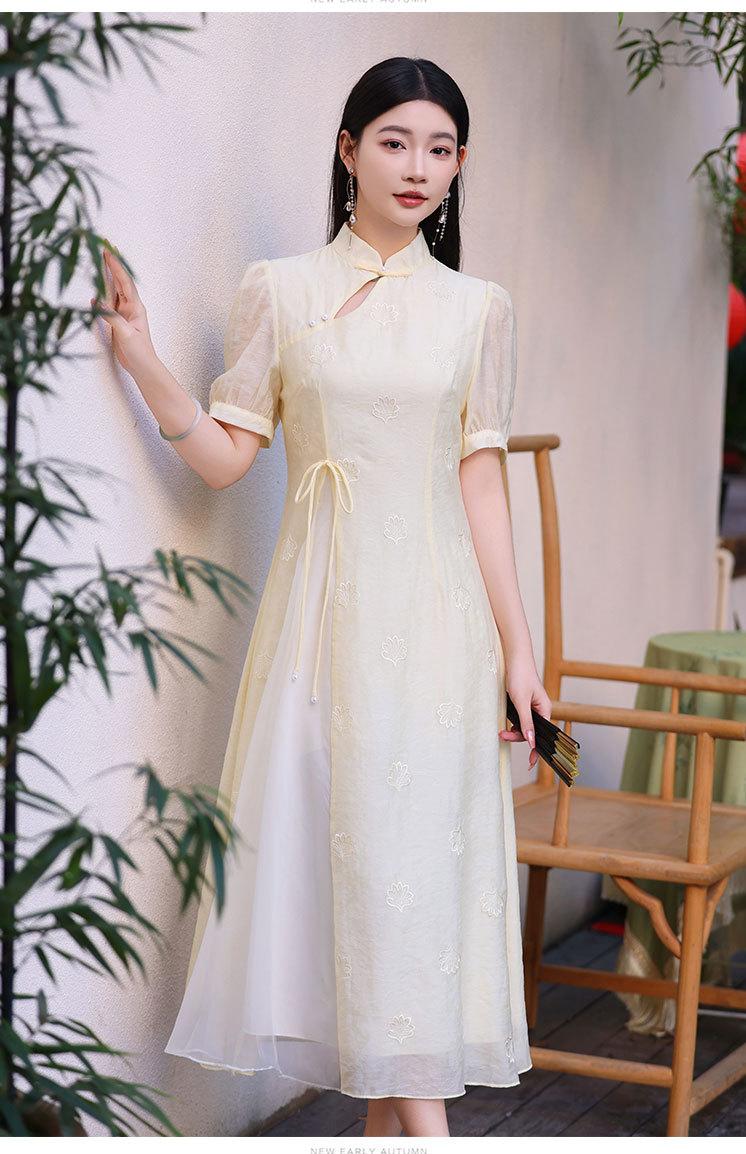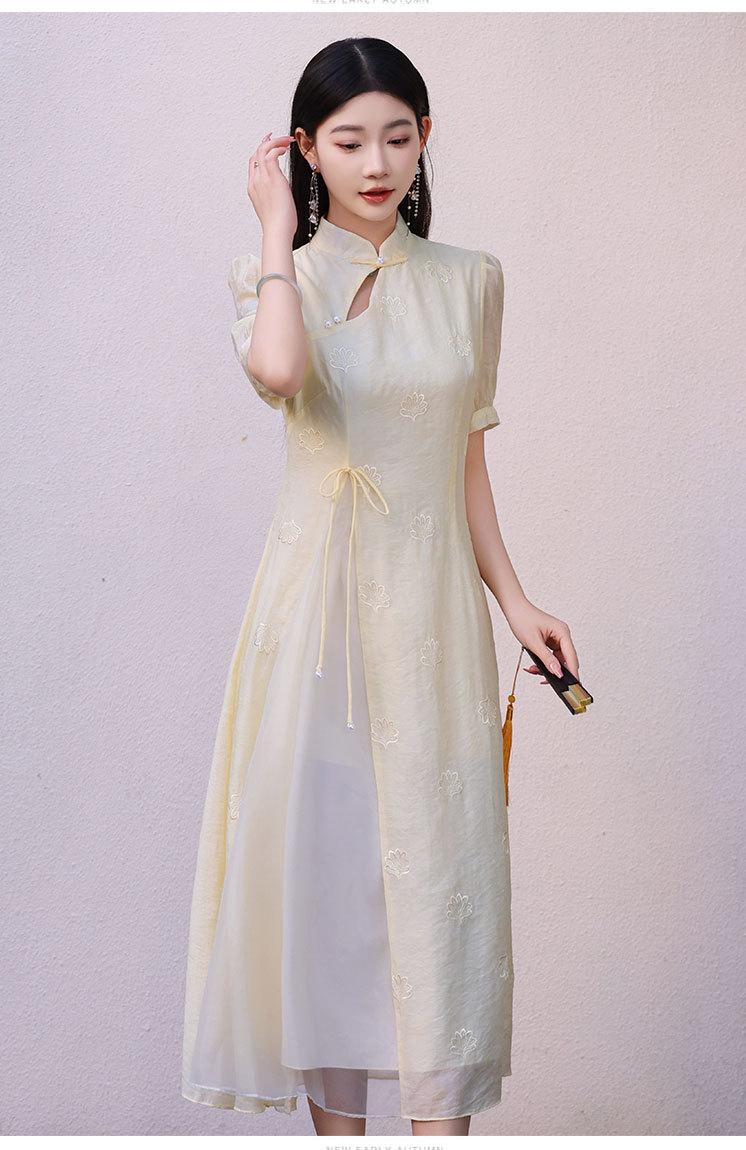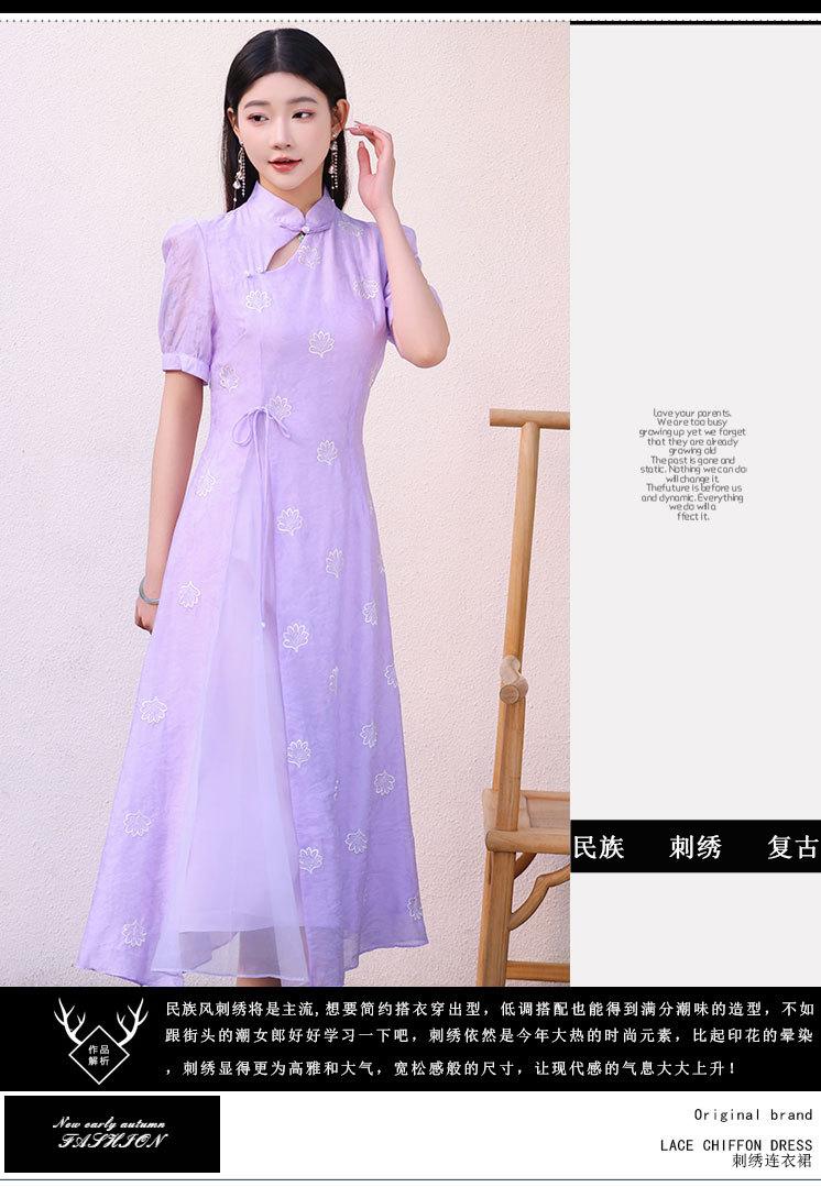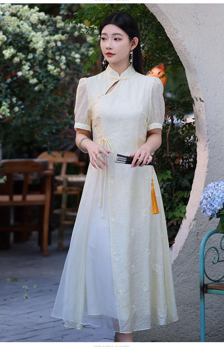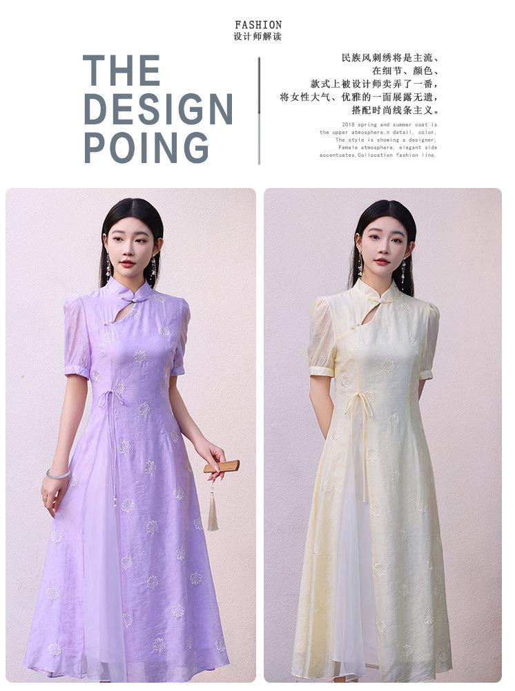 Nuevo estilo chino mejorado ao dai cheongsam retro estilo chino moda nacional bordado pequeño cuello alto vestido de temperamento ceñido a la cintura 6086