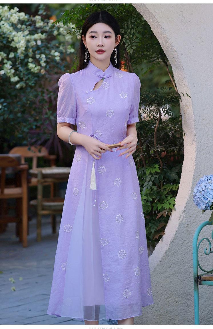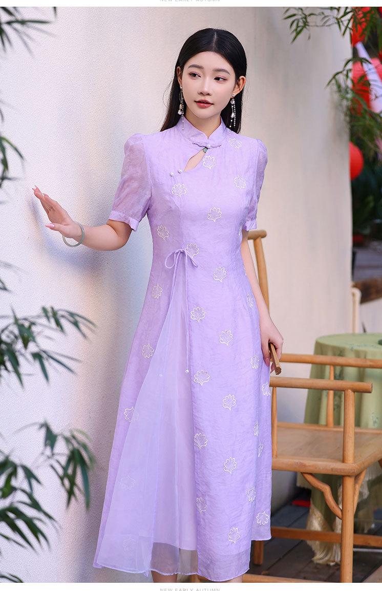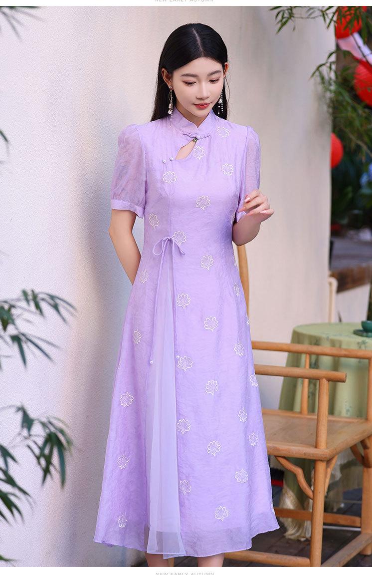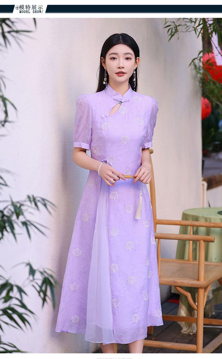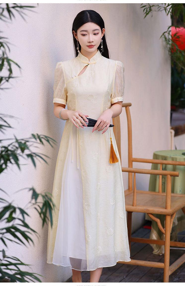 Nuevo estilo chino mejorado ao dai cheongsam retro estilo chino moda nacional bordado pequeño cuello alto vestido de temperamento ceñido a la cintura 6086