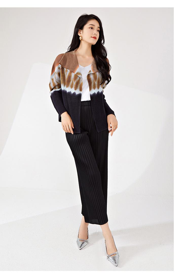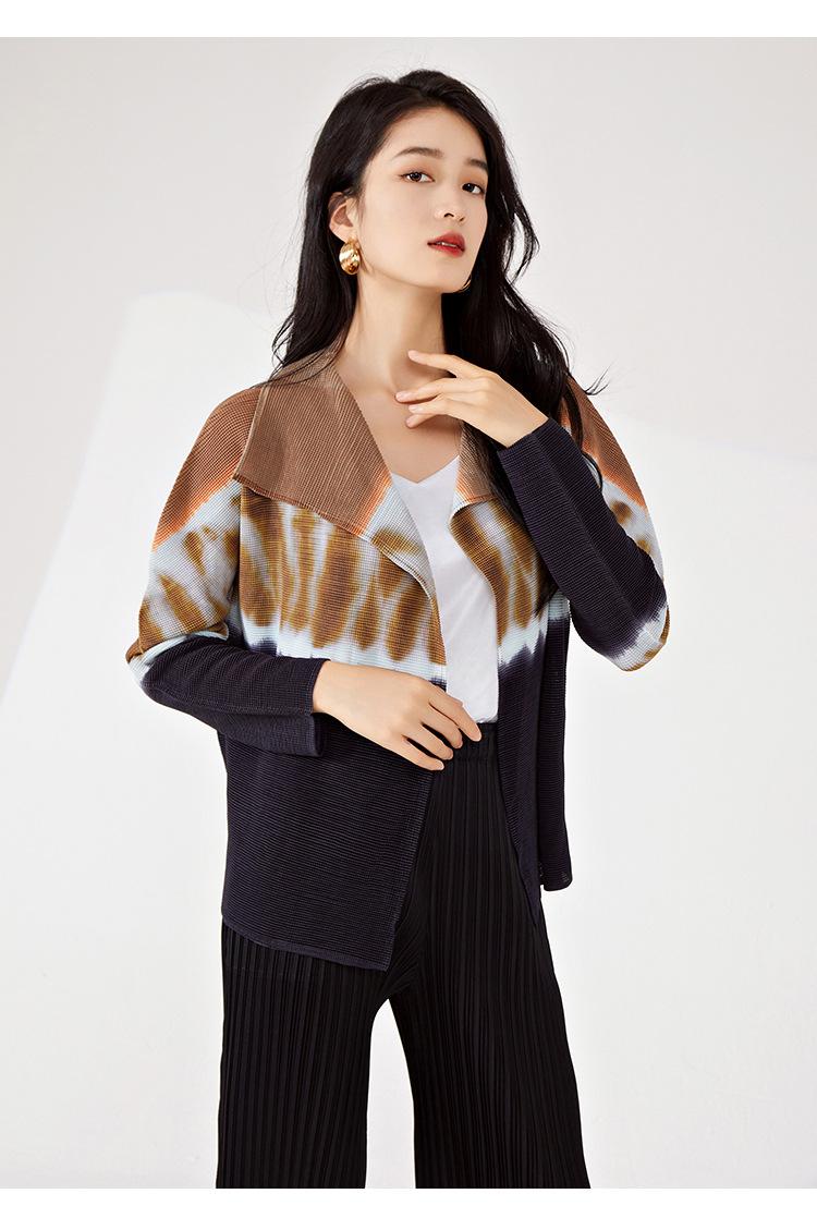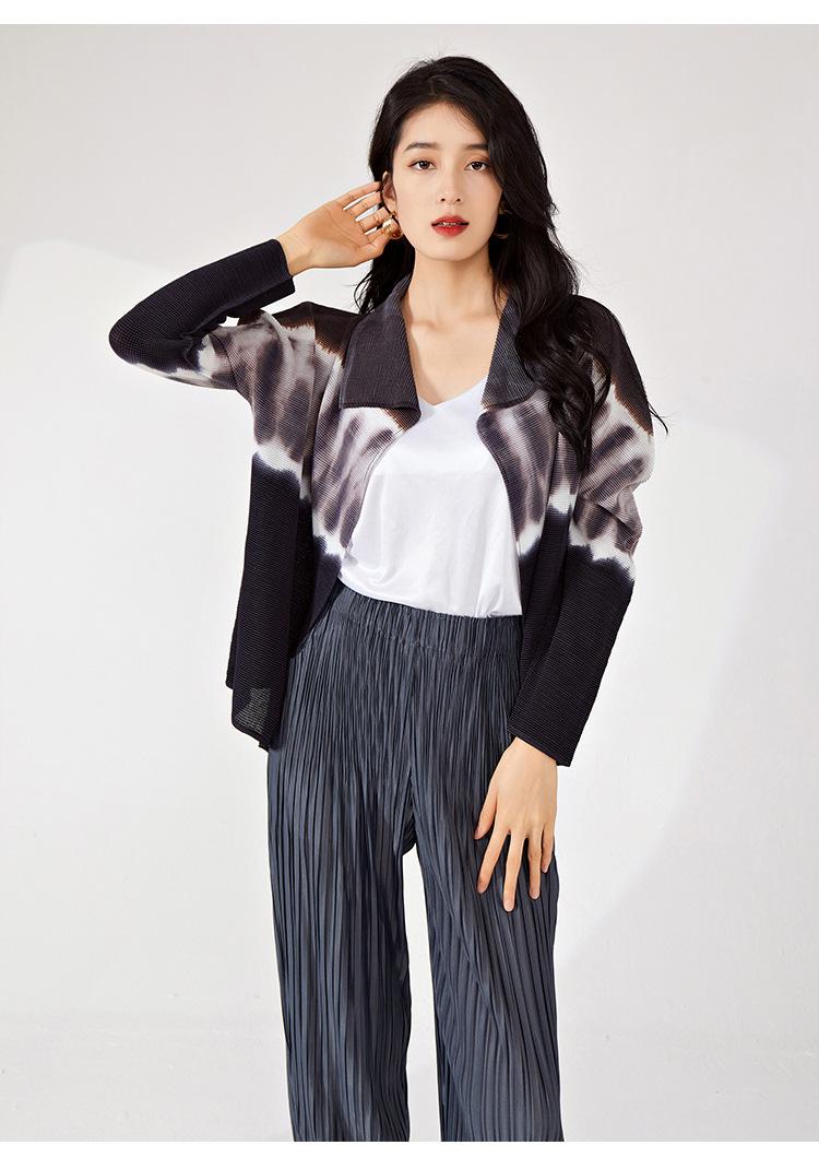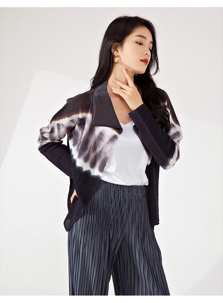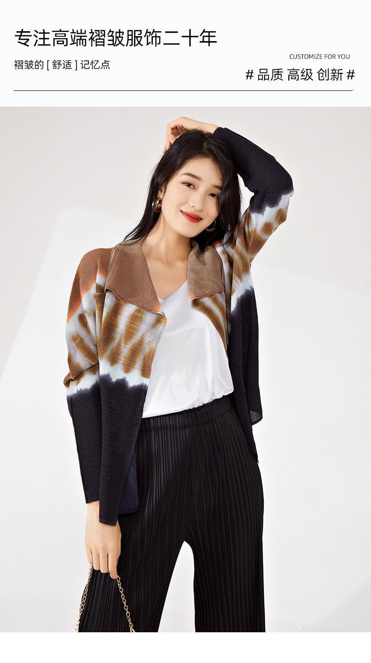 Chaqueta corta ajustada con mangas de cinco puntos para mujer de Miyake, estilo nuevo de primavera y verano, con un botón y top plisado, para uso exterior |