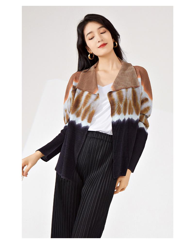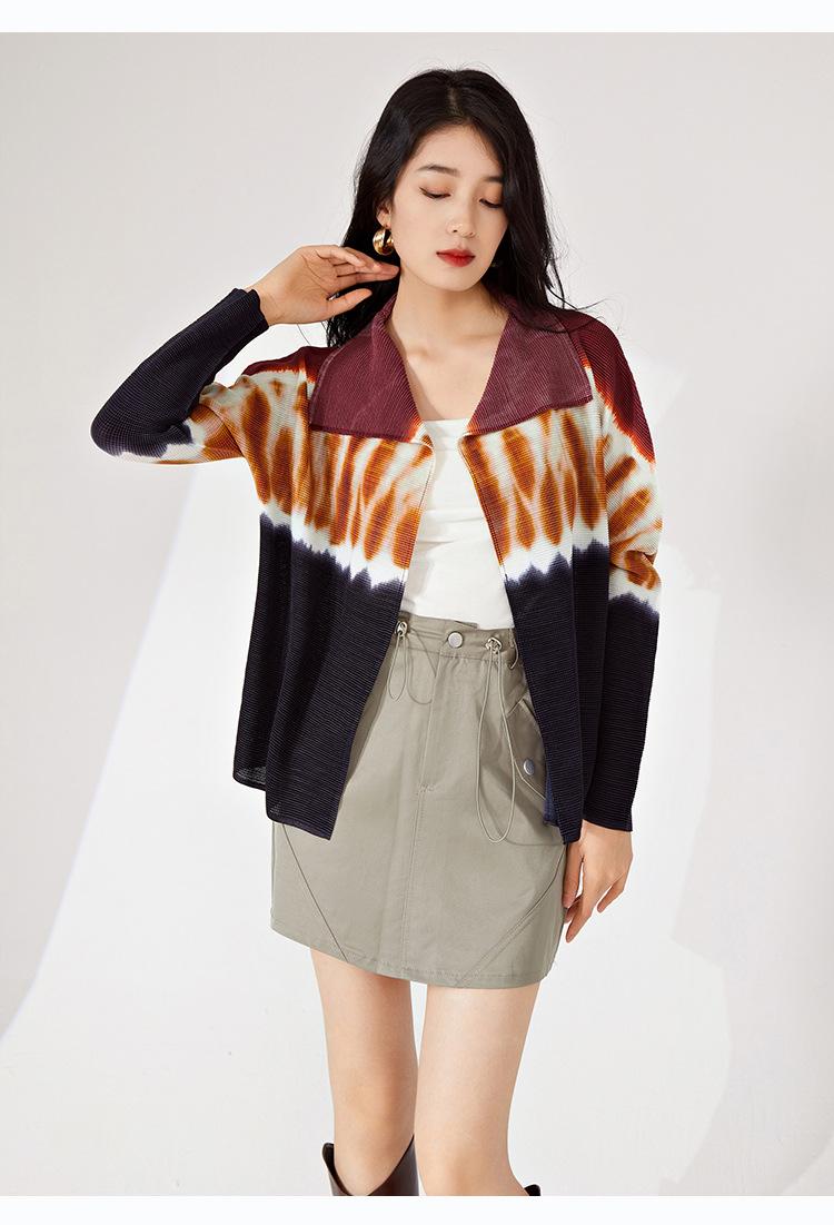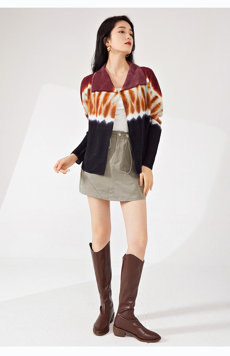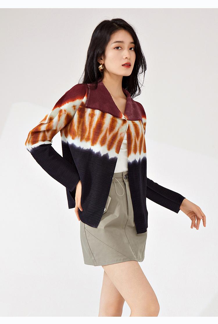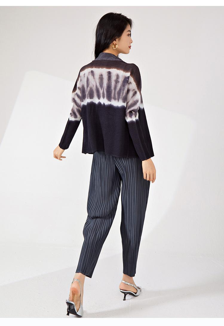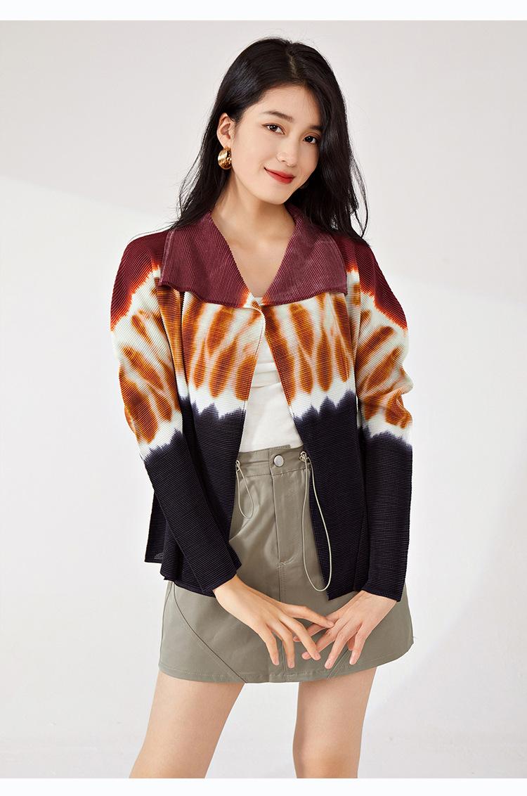 Chaqueta corta ajustada con mangas de cinco puntos para mujer de Miyake, estilo nuevo de primavera y verano, con un botón y top plisado, para uso exterior |