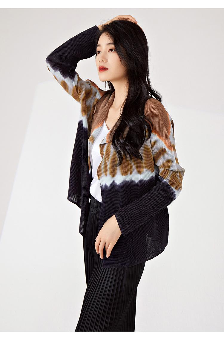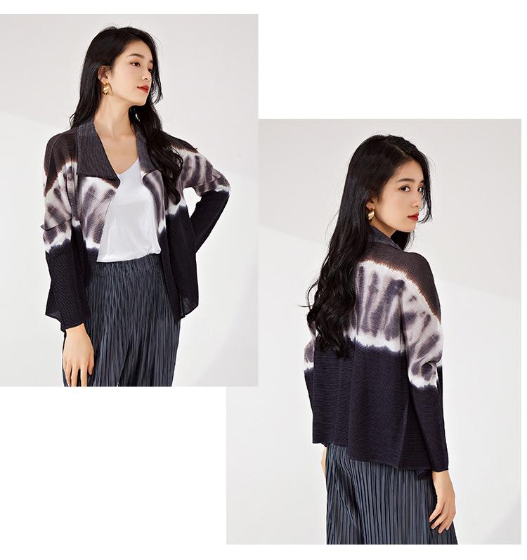 Chaqueta corta Miyake para mujer, de verano, nueva, de manga corta, fina, con aire acondicionado, cárdigan con un solo pecho y plisado. |