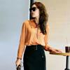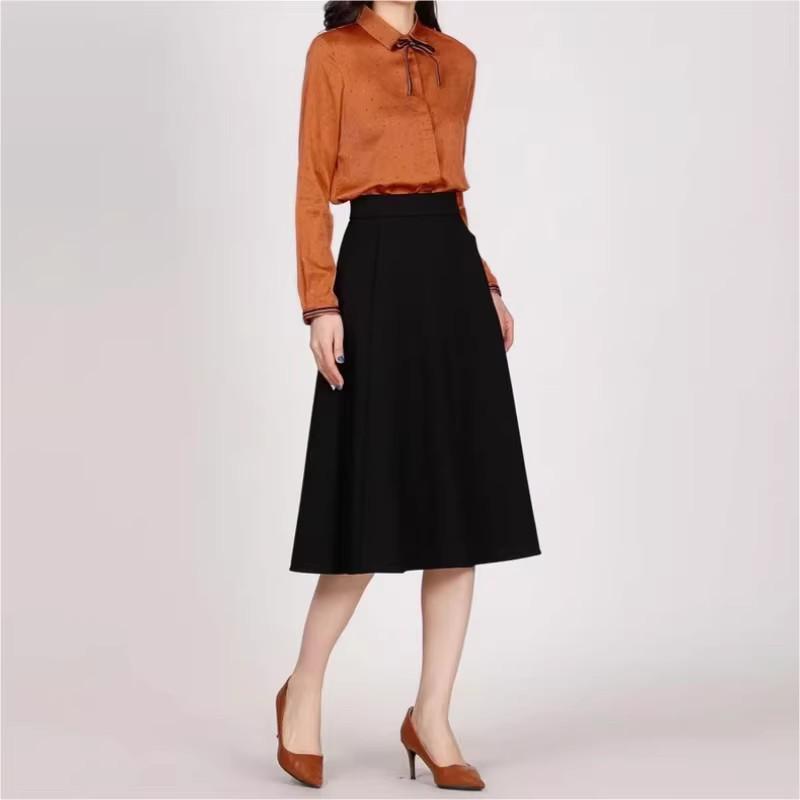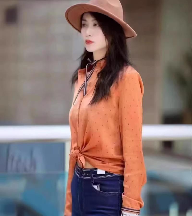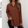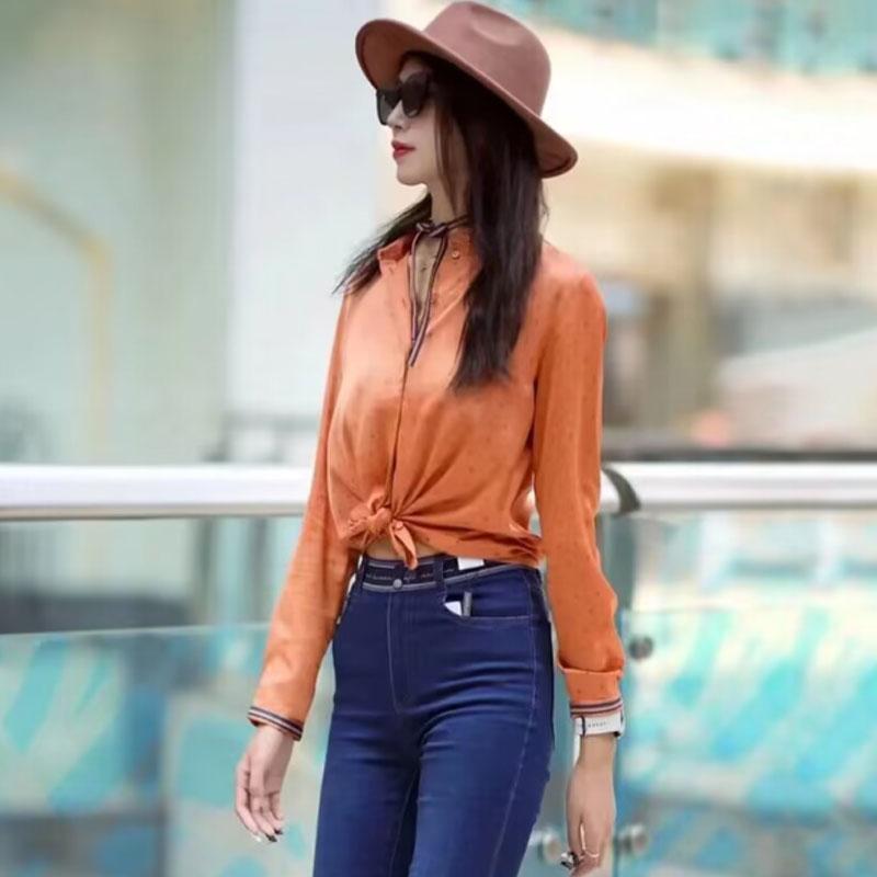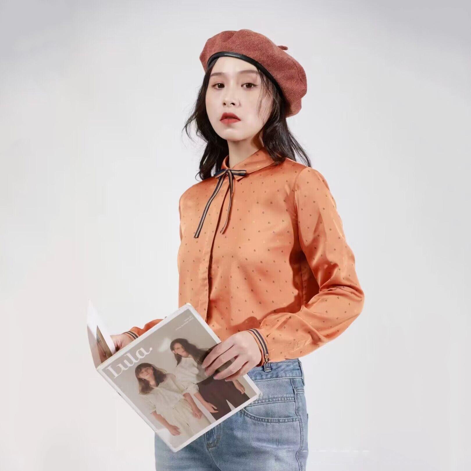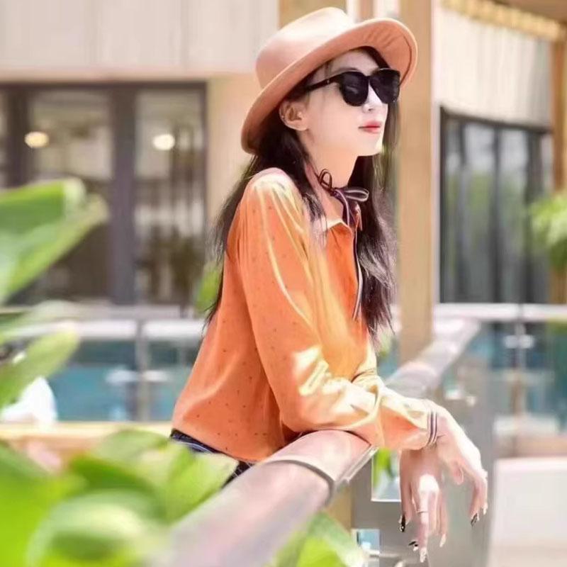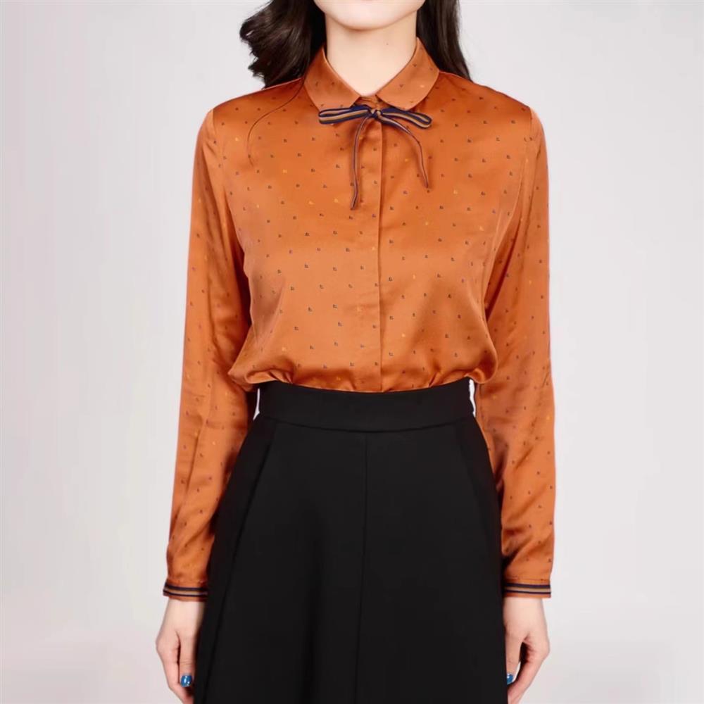Camisa casual de chifón para mujer con cuello polo, manga larga con cordones y estampado de lunares, otoño 2024