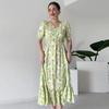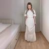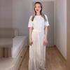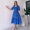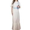 2024 Verano Nuevo Europeo y Americano Transfronterizo Amazon Transfronterizo Color Sólido Cuello Redondo Cintura Alta Vestido Dulce y Delicado para Mujer