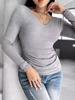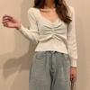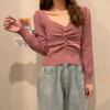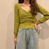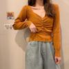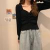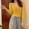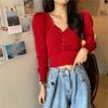 En stock, otoño 2021, nuevo suéter corto con cuello en V y botones que combinan con todo para mujer, top de manga larga adelgazante ajustado