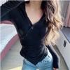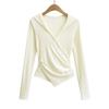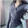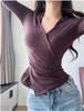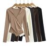 Camiseta de manga larga con cuello en V cruzado para mujer, diseño nuevo de primavera 2024, versátil, pura y sexy, top irregular ajustado para chica