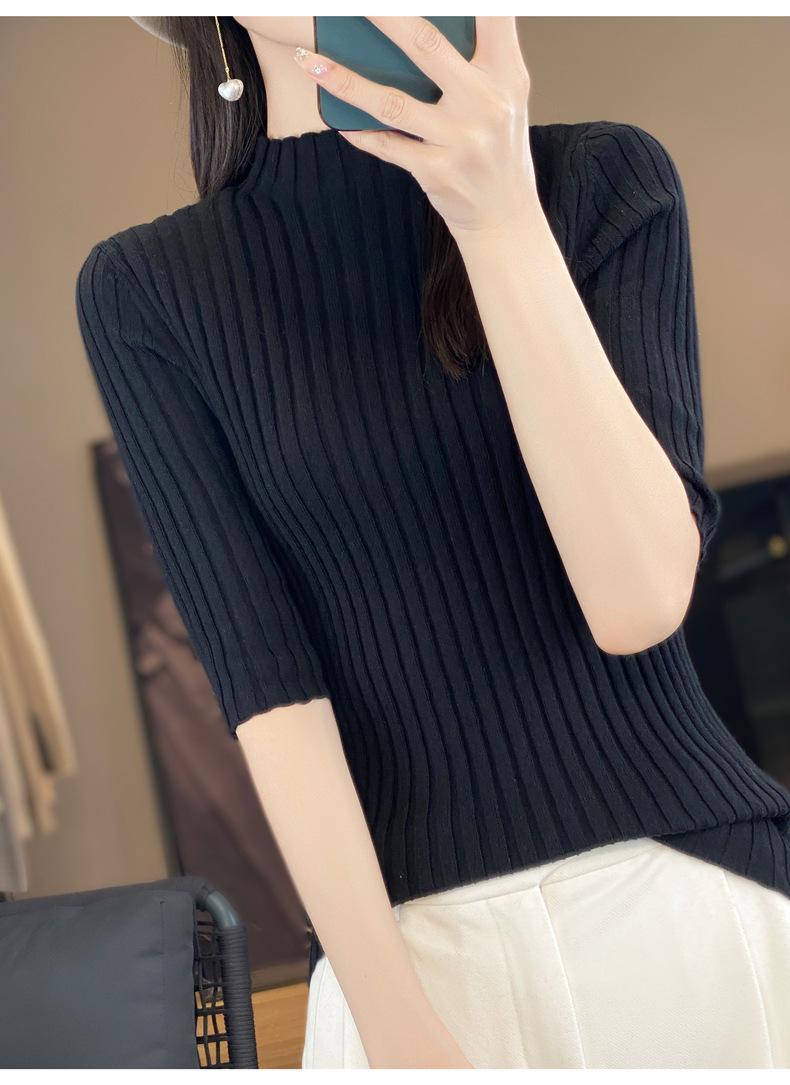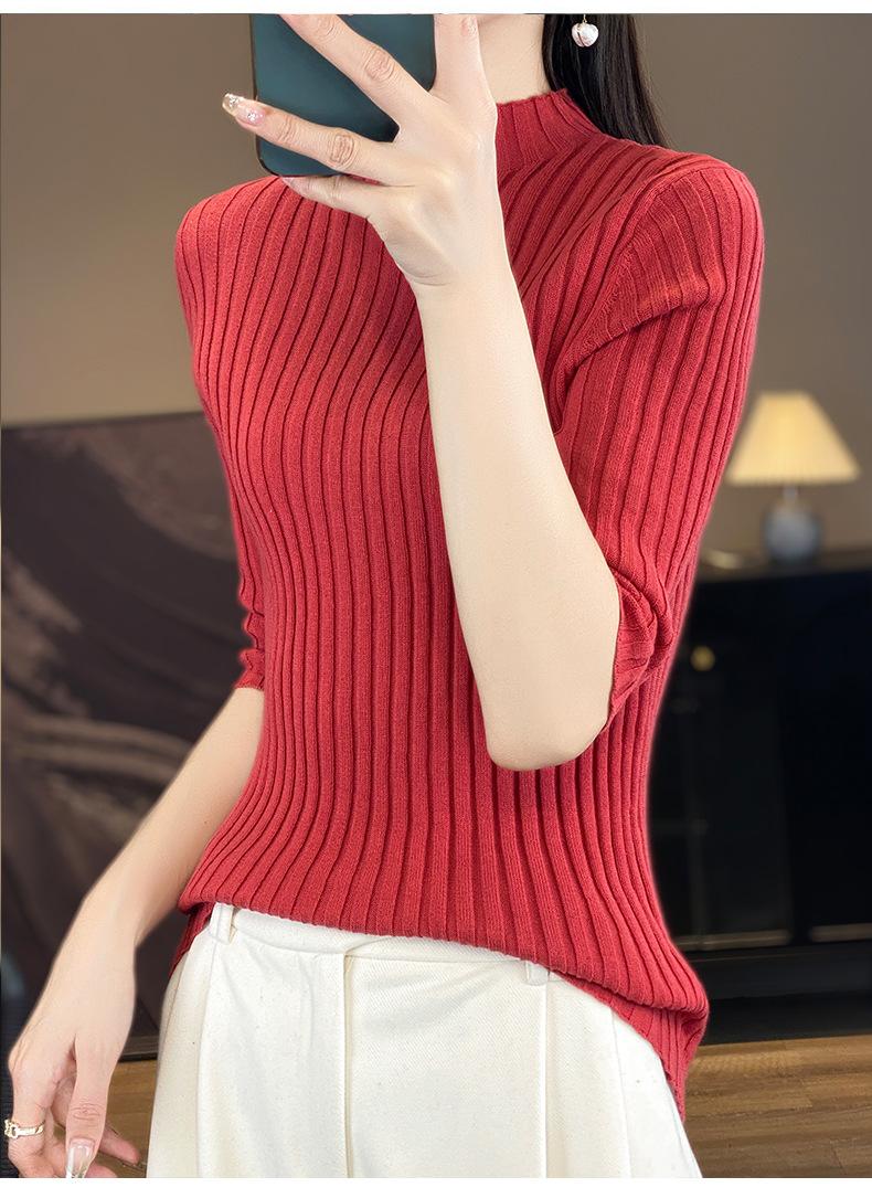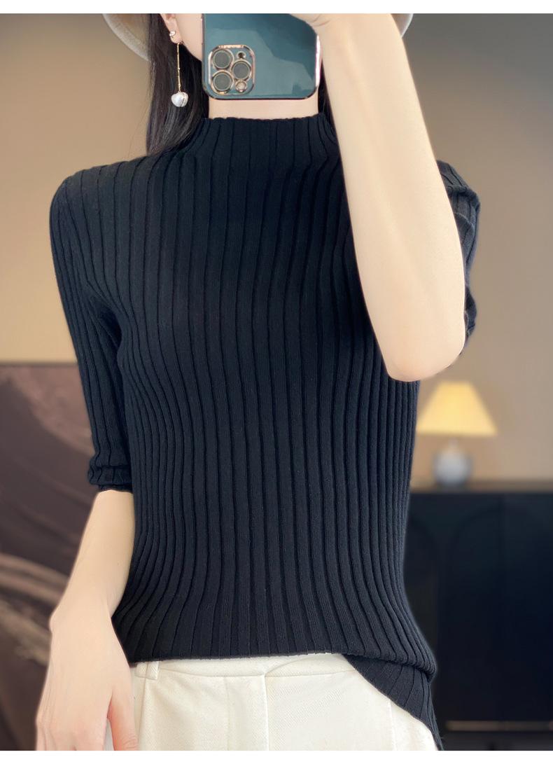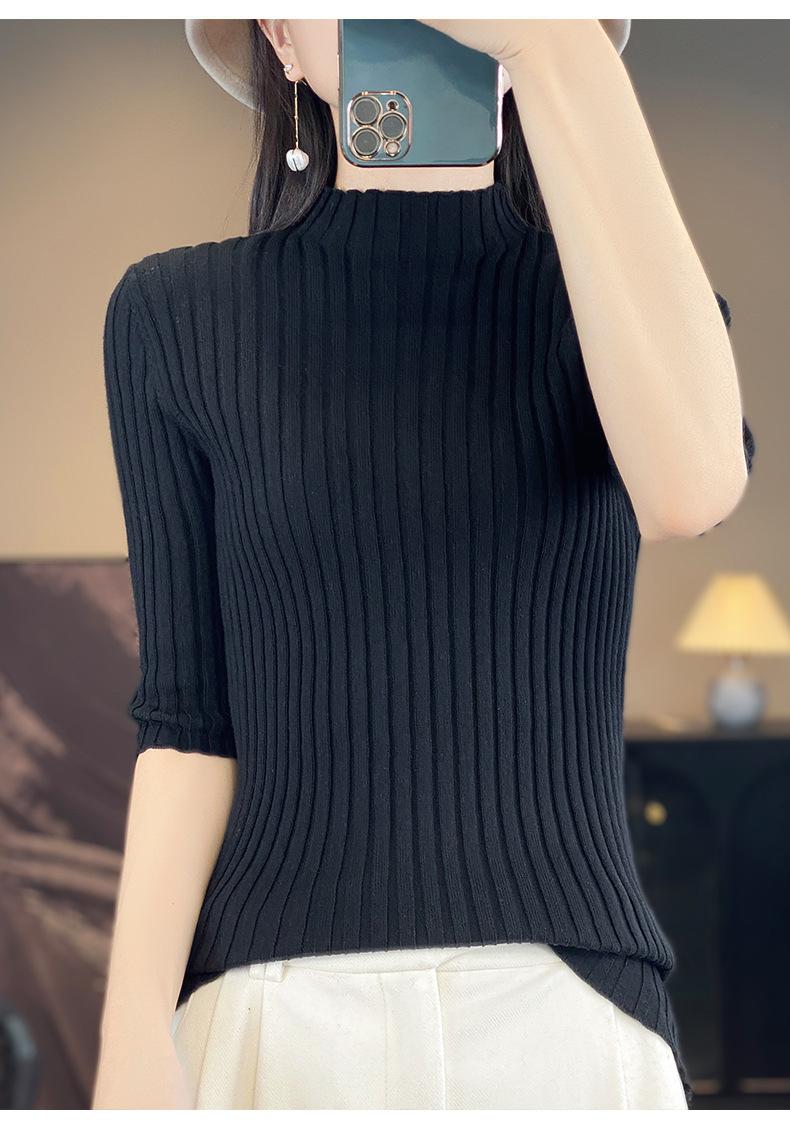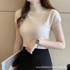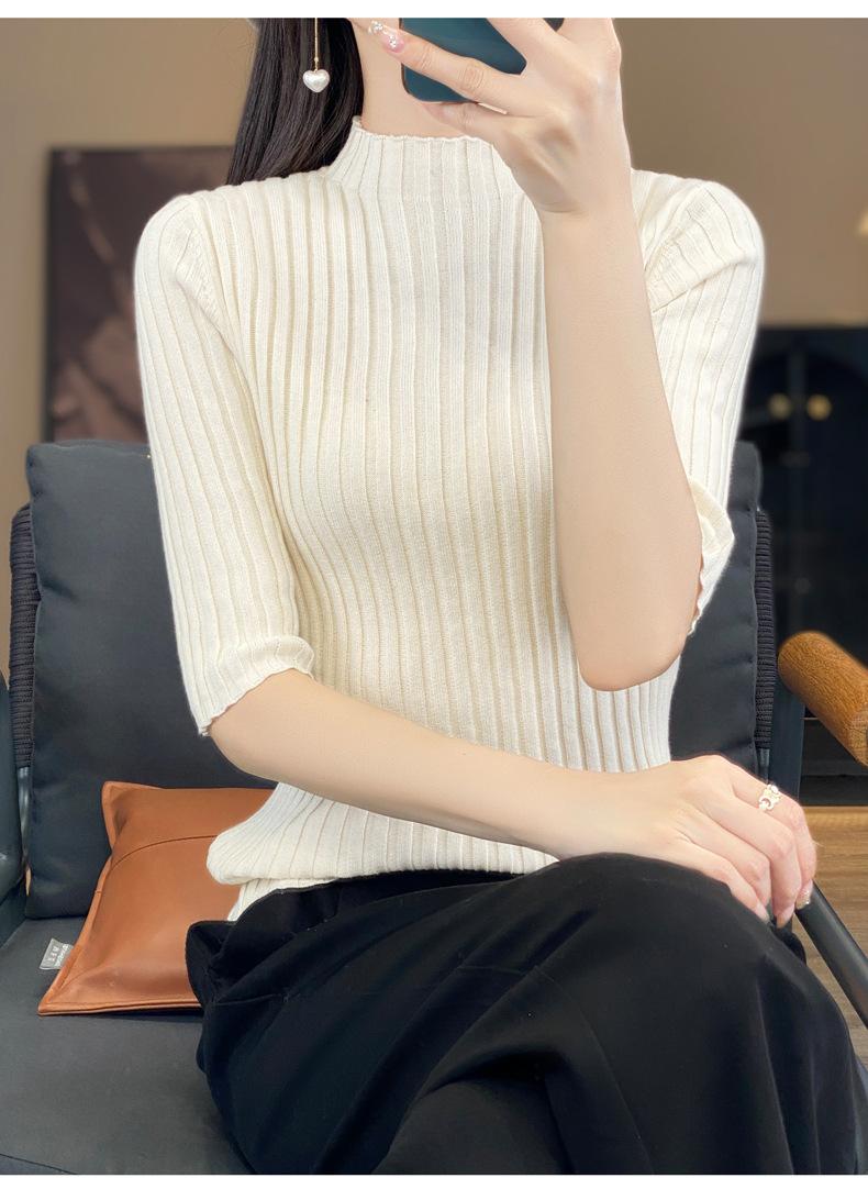 Camiseta Base Fina de Cuello Medio Alto para Mujer Primavera y Otoño Algodón Puro Ajustada Manga Corta Media Camiseta Top Suéter para Mujer