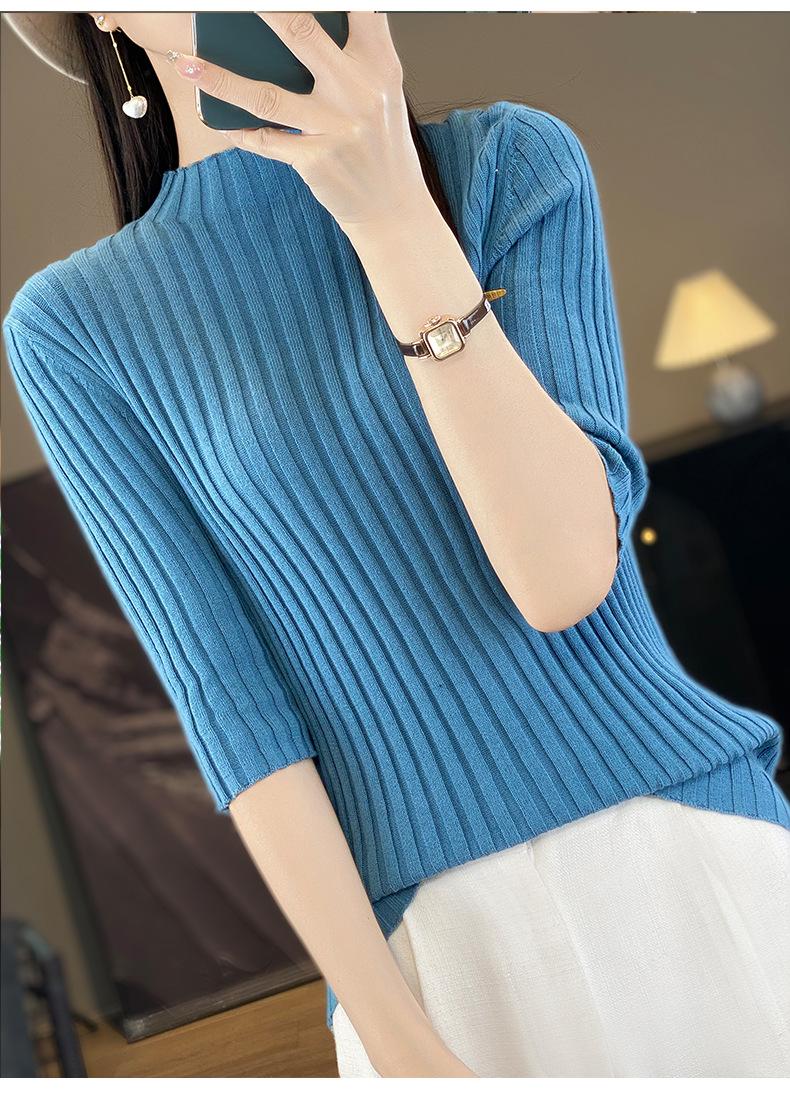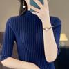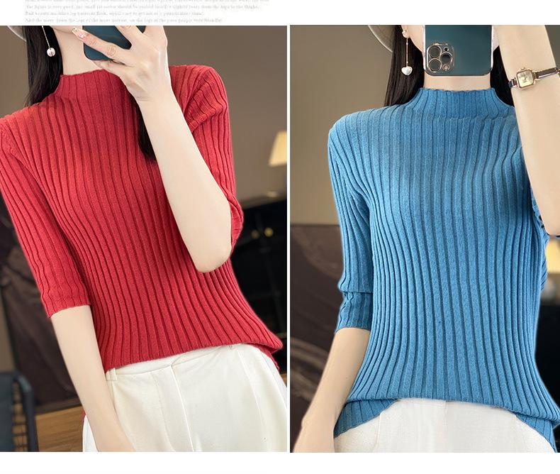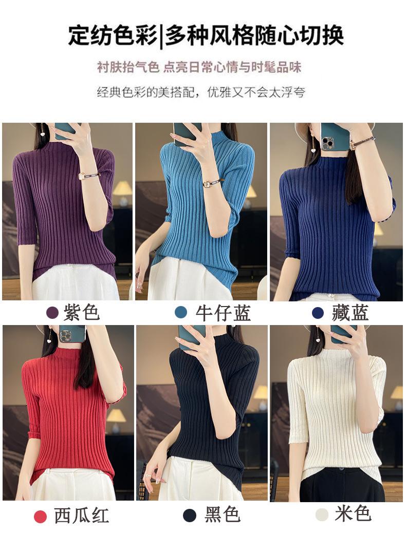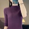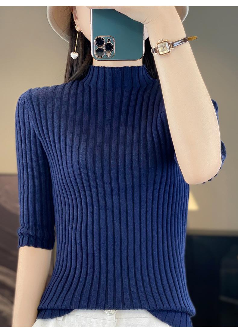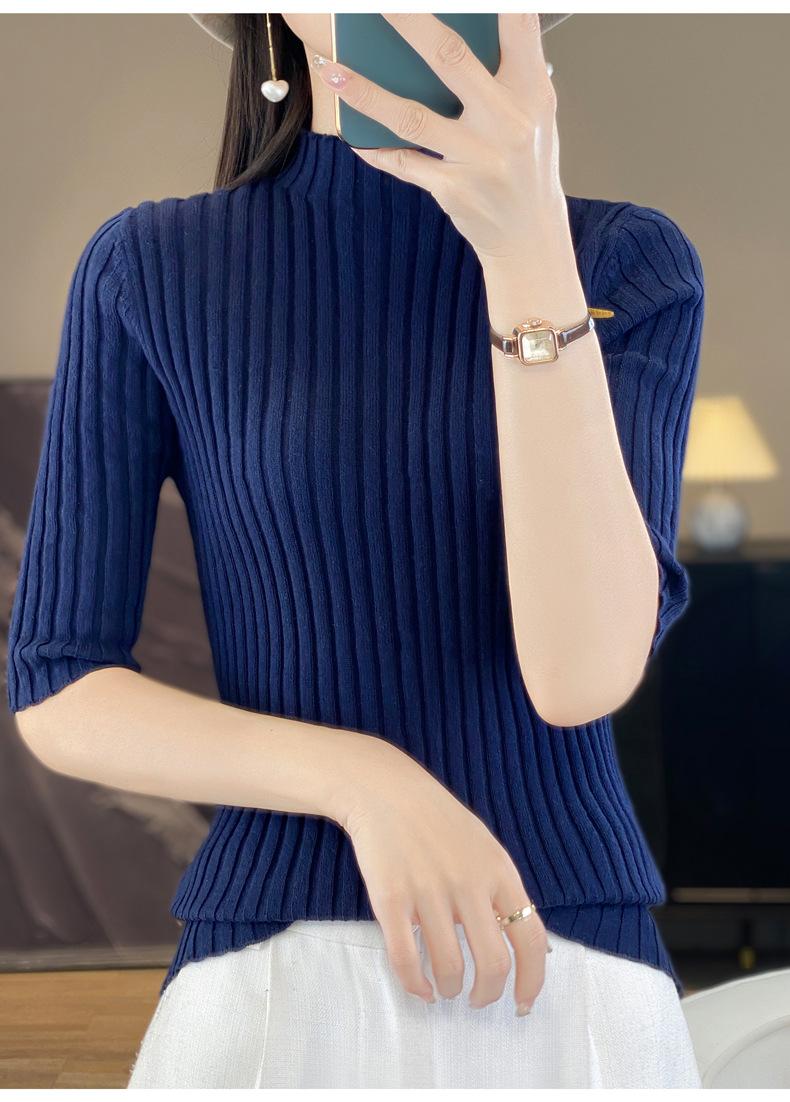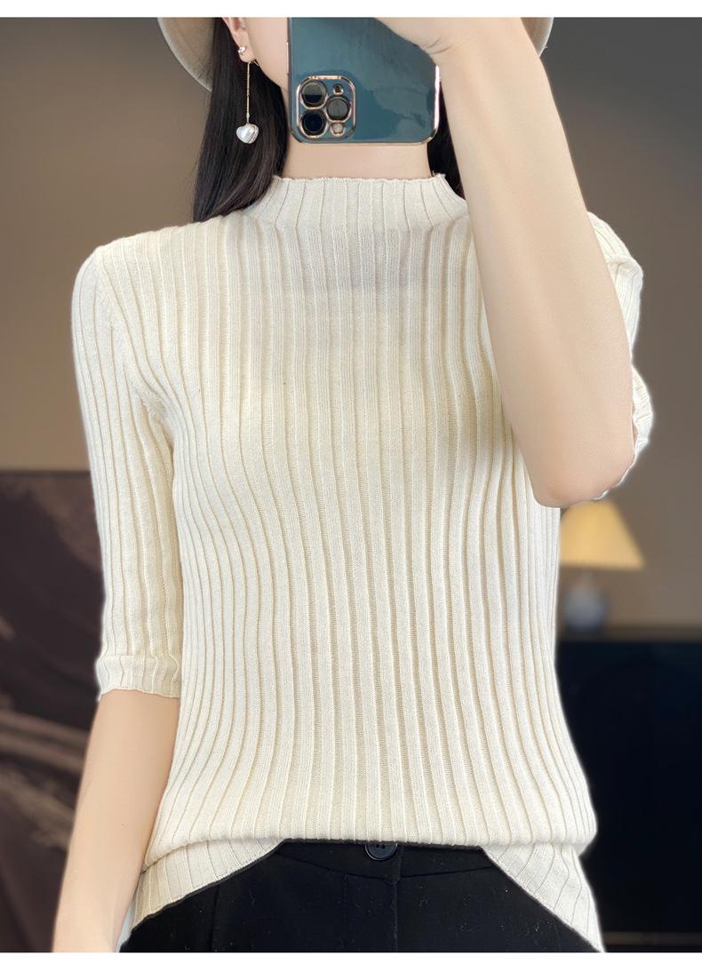 Camiseta Base Fina de Cuello Medio Alto para Mujer Primavera y Otoño Algodón Puro Ajustada Manga Corta Media Camiseta Top Suéter para Mujer