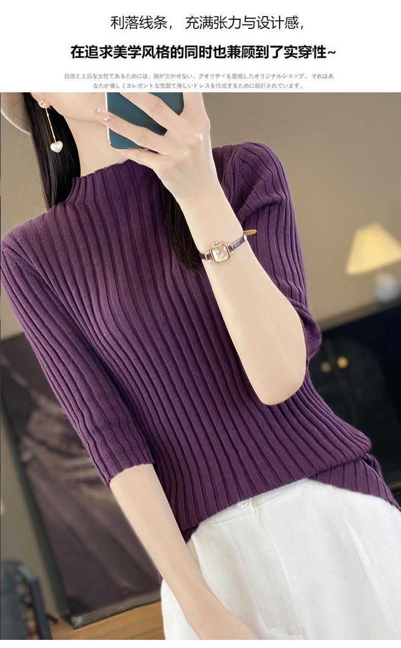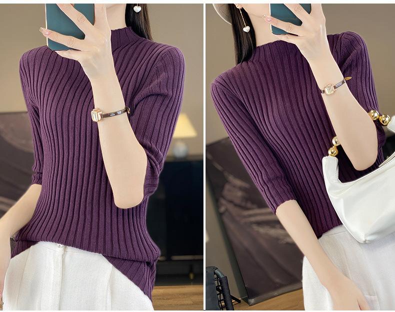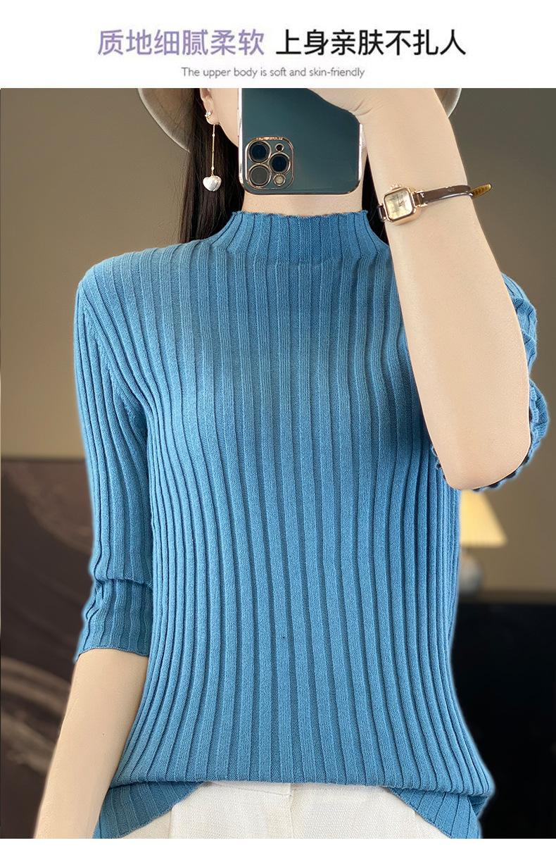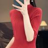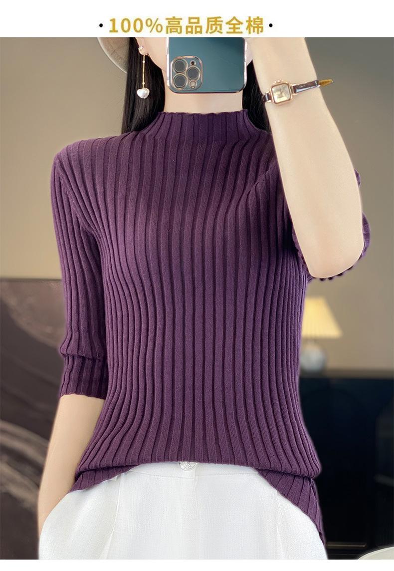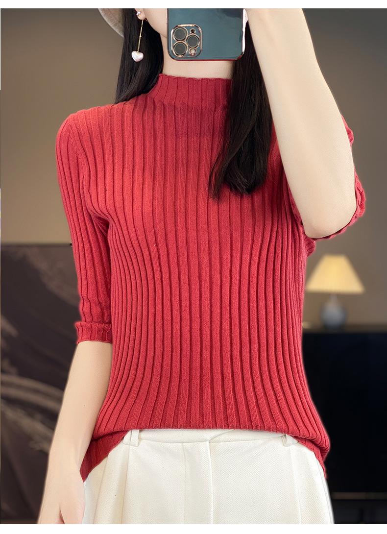 Camiseta Base Fina de Cuello Medio Alto para Mujer Primavera y Otoño Algodón Puro Ajustada Manga Corta Media Camiseta Top Suéter para Mujer