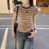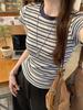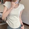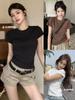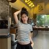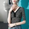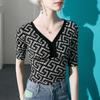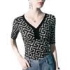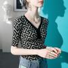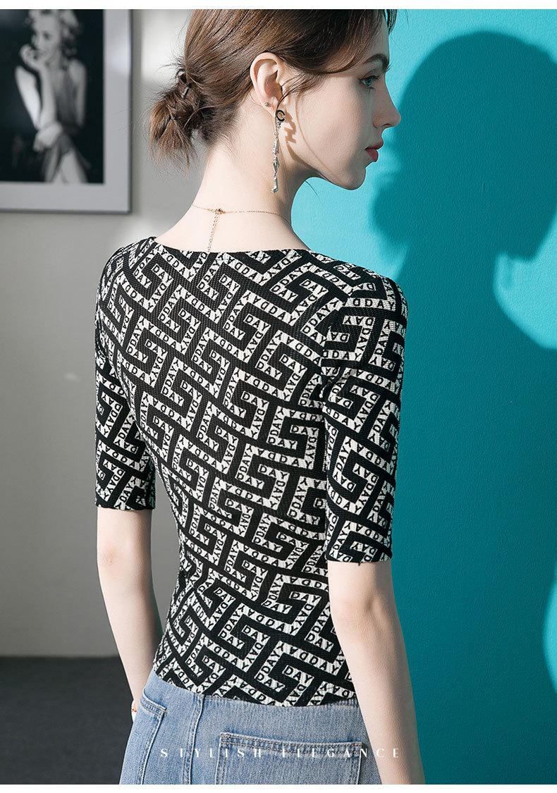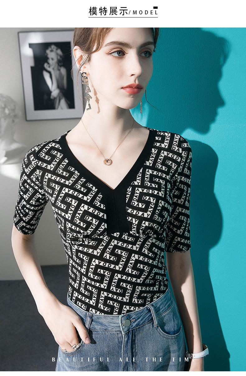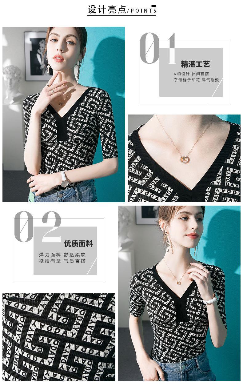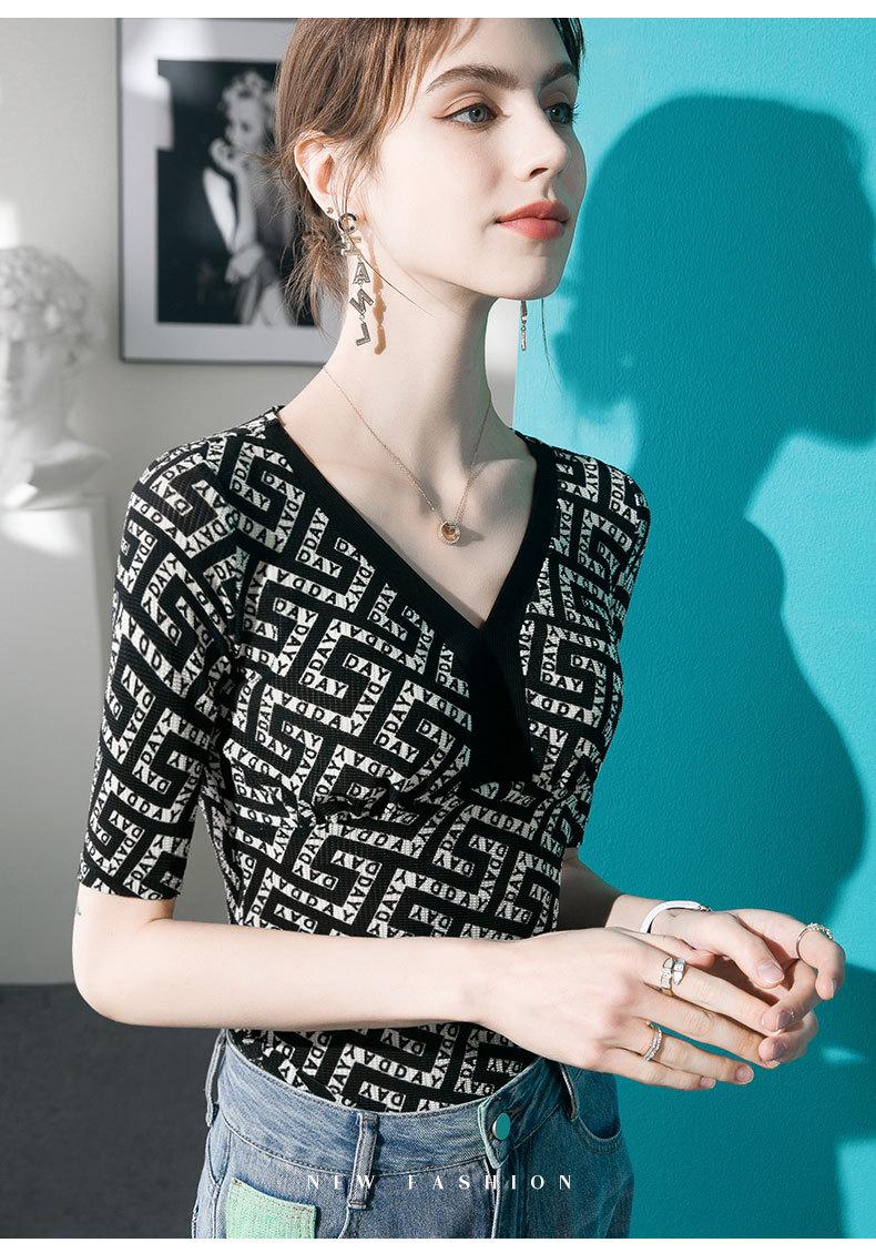 Camiseta básica de cuello en V con estampado de letras a cuadros para mujer, manga media, corte ajustado, nueva para primavera y verano 2023, camiseta de manga media, camisa pequeña, estilo occidental