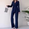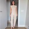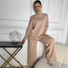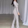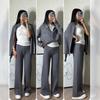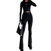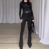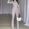 Otoño 2024 nuevo conjunto de dos piezas de moda transfronteriza europea y americana de Amazon, color sólido, cuello redondo, corto, ajustado, pantalones pitillo