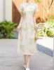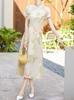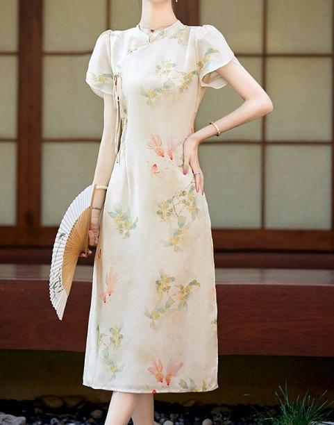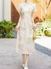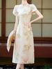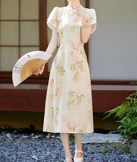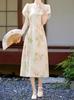 Vestido vintage cheongsam modificado chino, novedad de verano de 2024, estilo retro, cintura ajustada, falda estampada elegante.