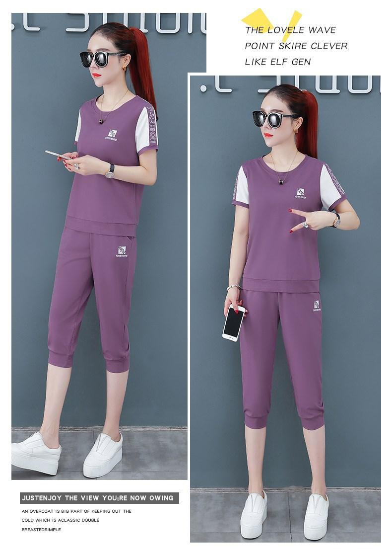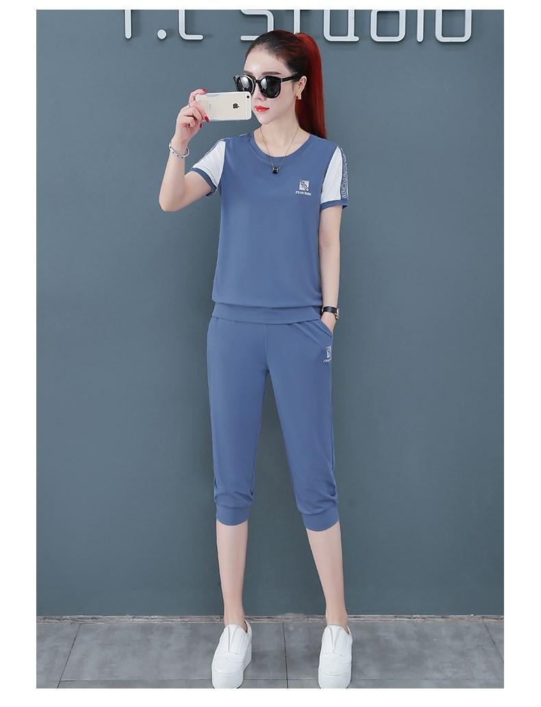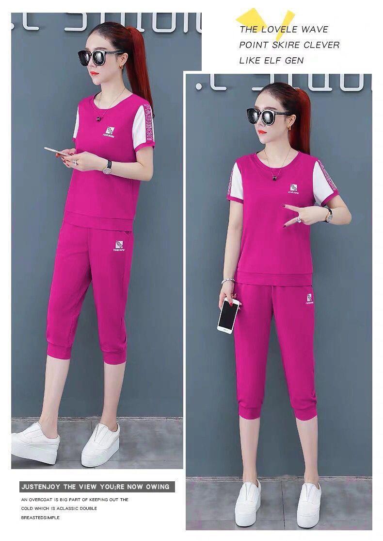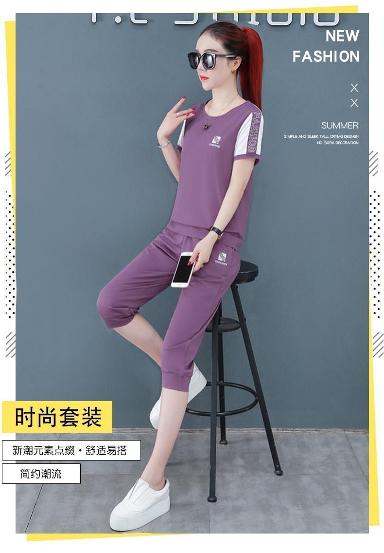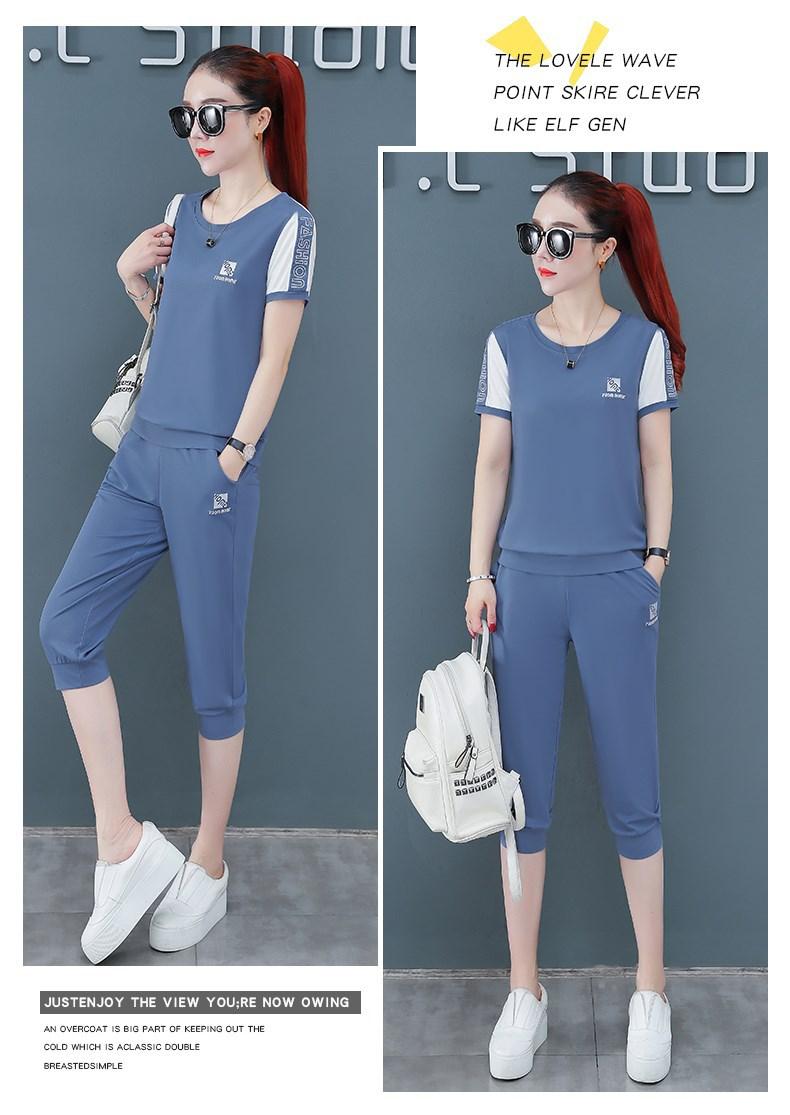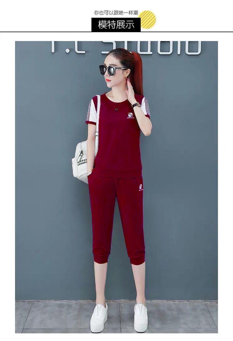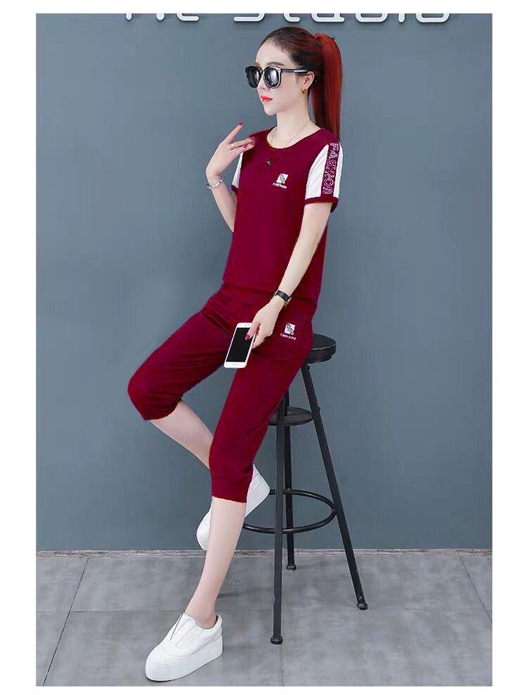 Verano Nuevo Traje Deportivo para Mujer 2025 Transfronterizo Estilo K Look Adelgazante Talla Grande Casual Manga Corta Pantalón Lápiz Conjunto de Dos Piezas
