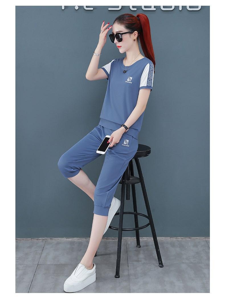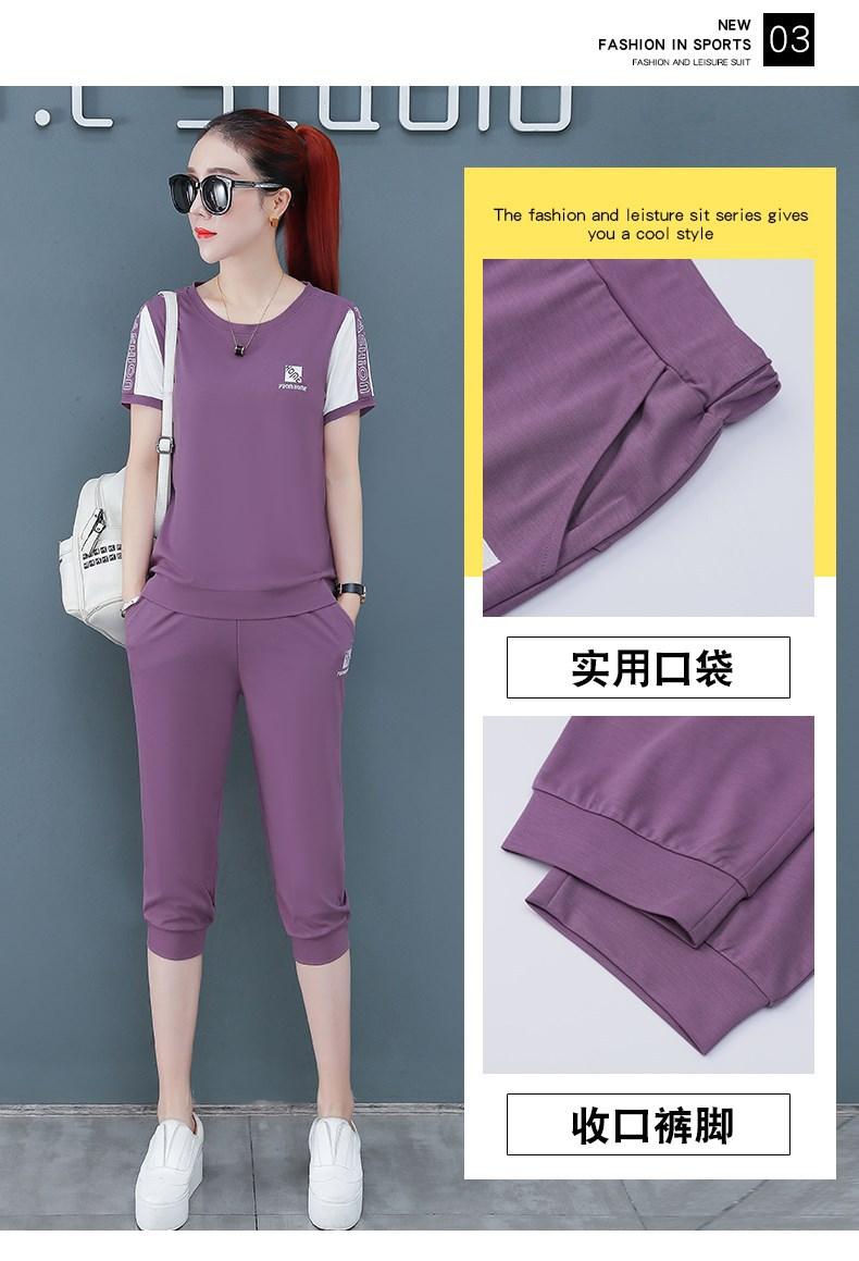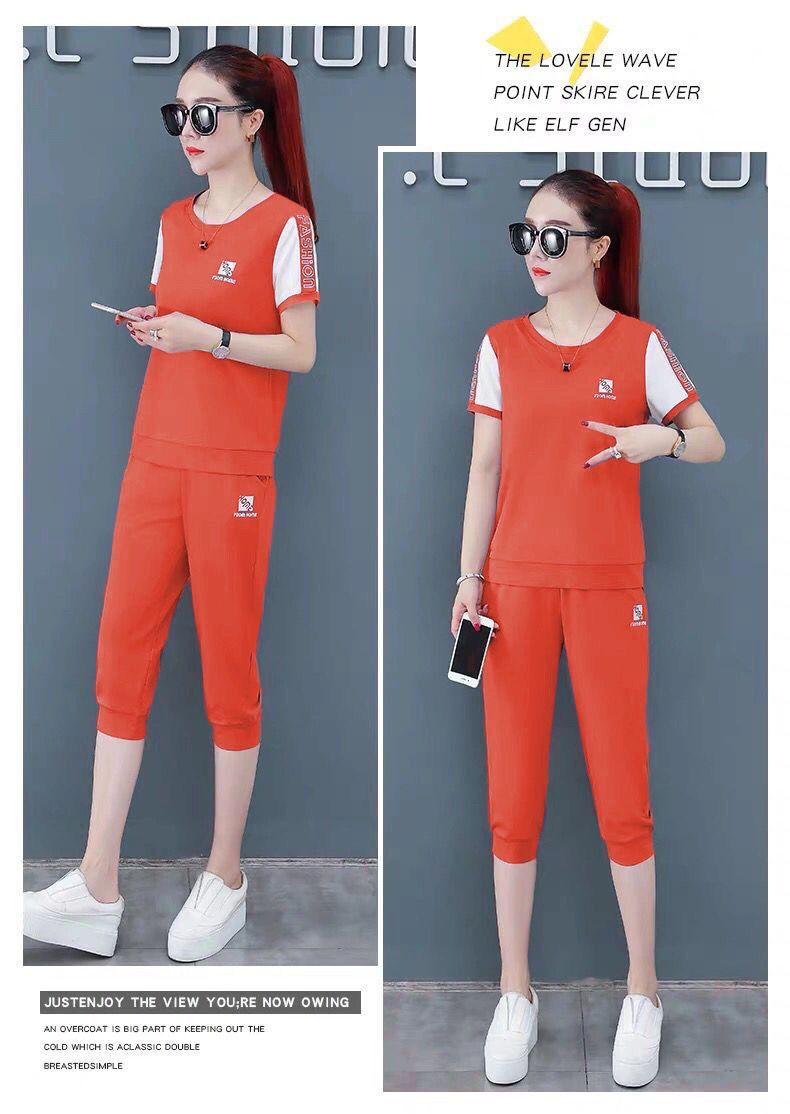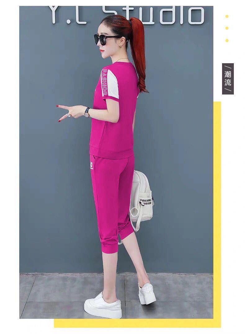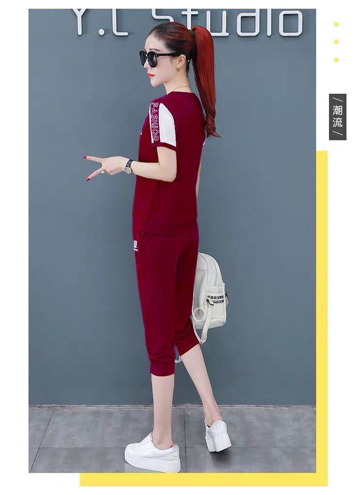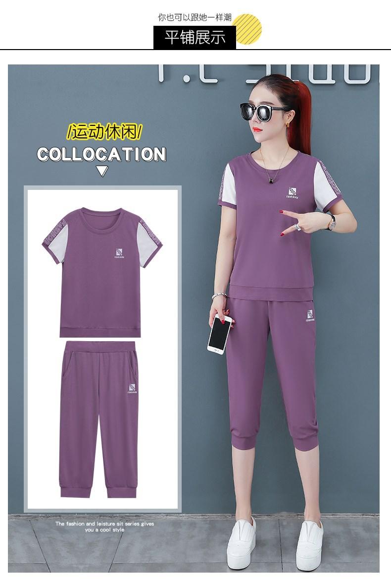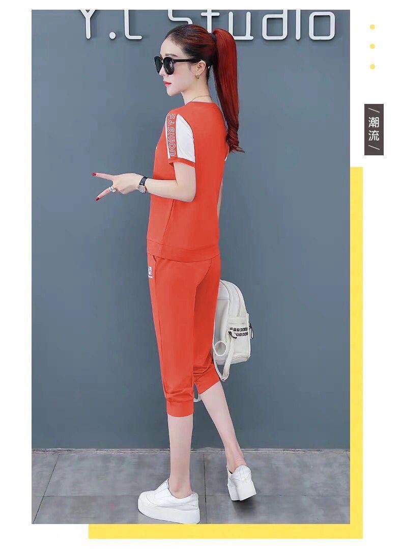Verano Nuevo Traje Deportivo para Mujer 2025 Transfronterizo Estilo K Look Adelgazante Talla Grande Casual Manga Corta Pantalón Lápiz Conjunto de Dos Piezas