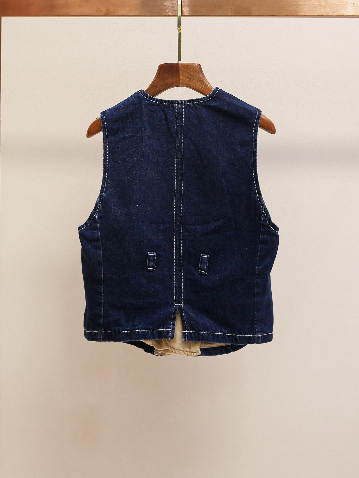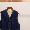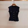Shenzhen Nanyou Ropa Elegante para Mujer 24 Verano Nuevo Retro Azul Pantalones con Bolsillo de Solapa Cuello en V Chaleco con Cordones Top Chaleco para Mujer