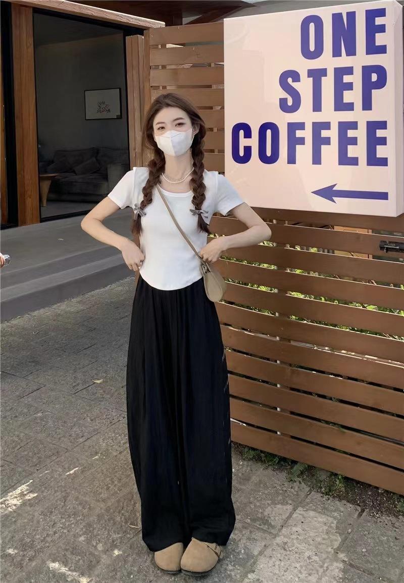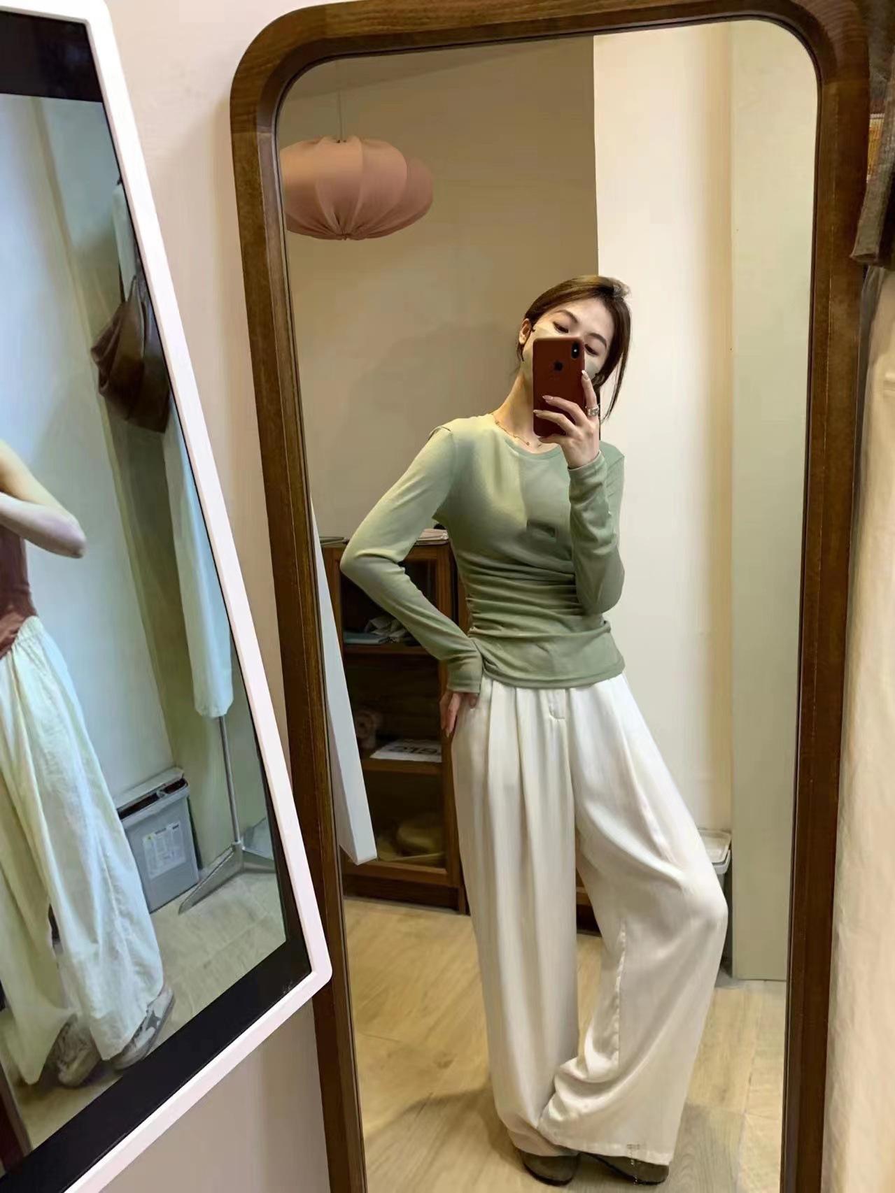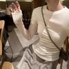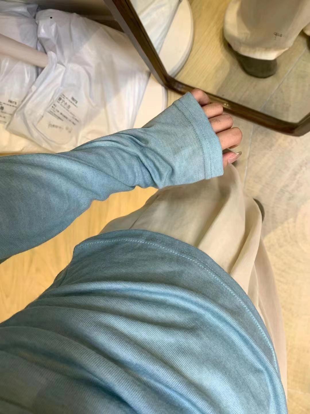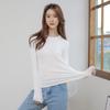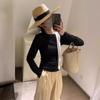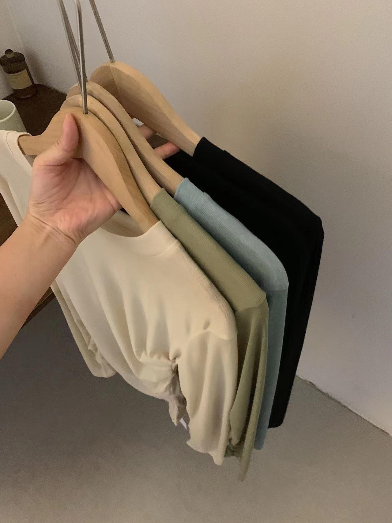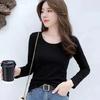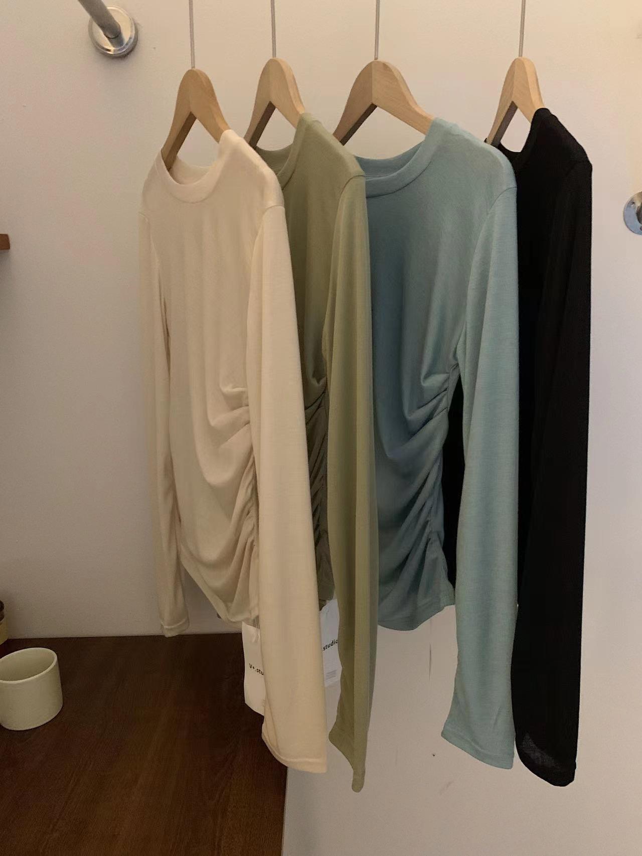 Camisa plisada de protección solar para principios de otoño de 2023, camiseta de manga larga de un solo uso con cuello redondo sencillo y ajustada para mujer