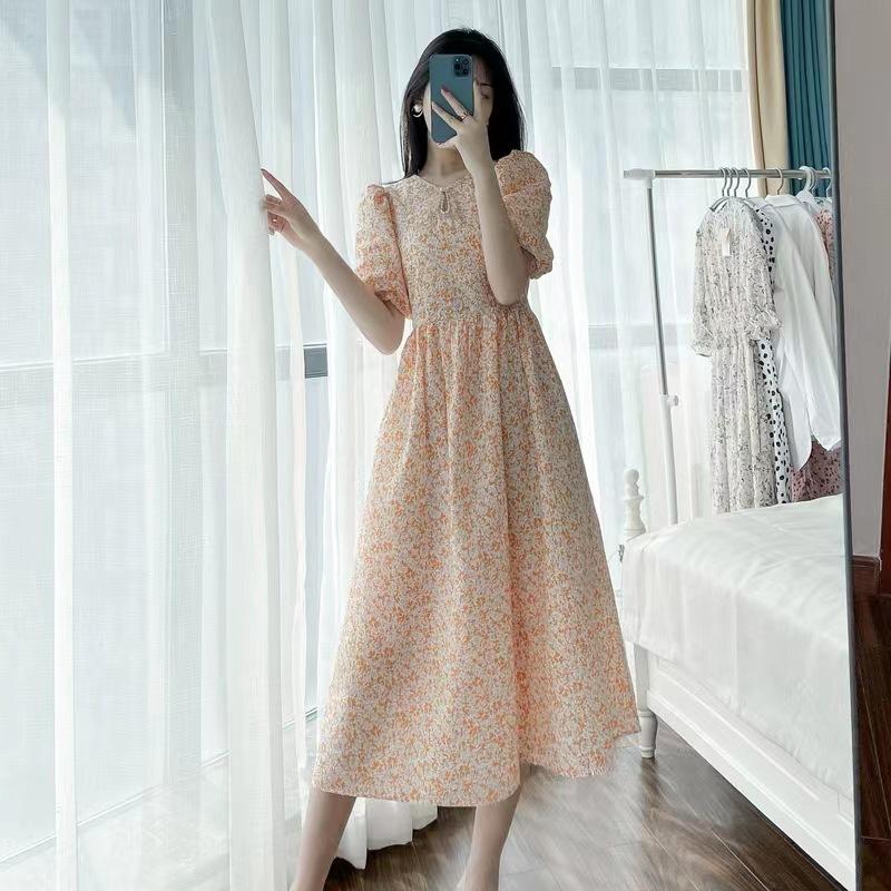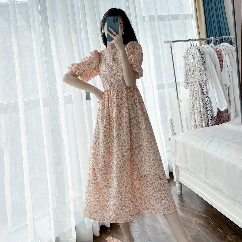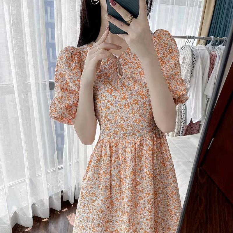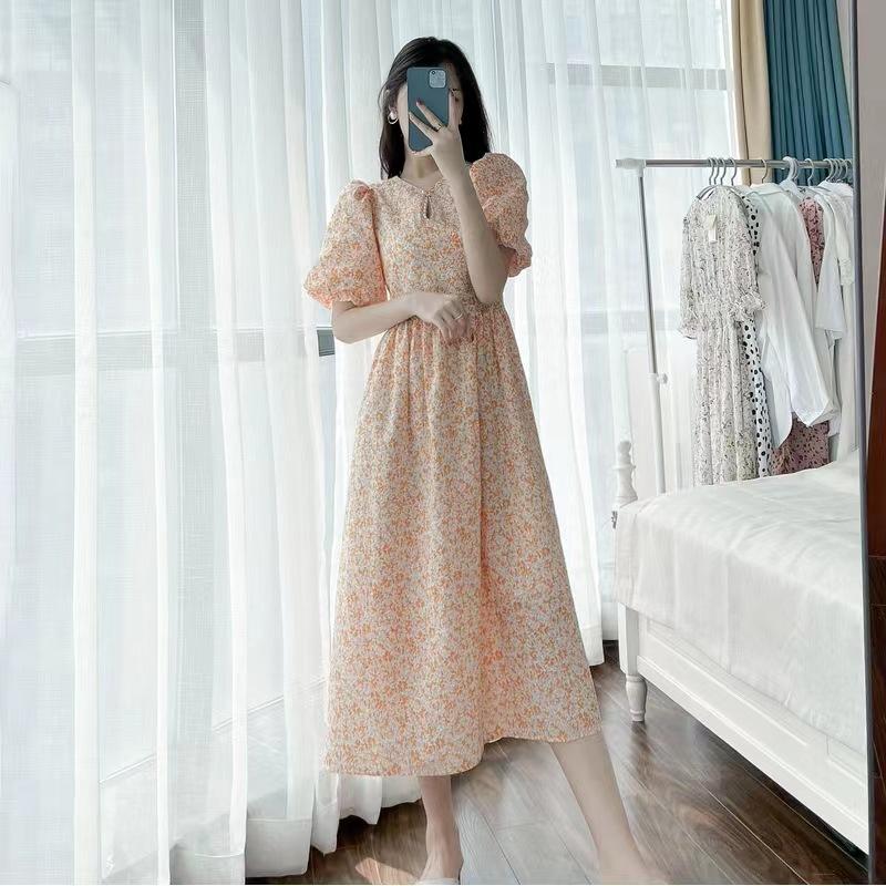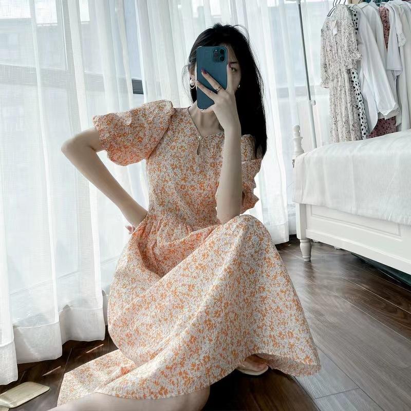 Vestido Nuevo Dulce de Verano de Manga Farol Francés Dama Super Hada Juventud Estilo Suave Falda Floral de Manga Corta