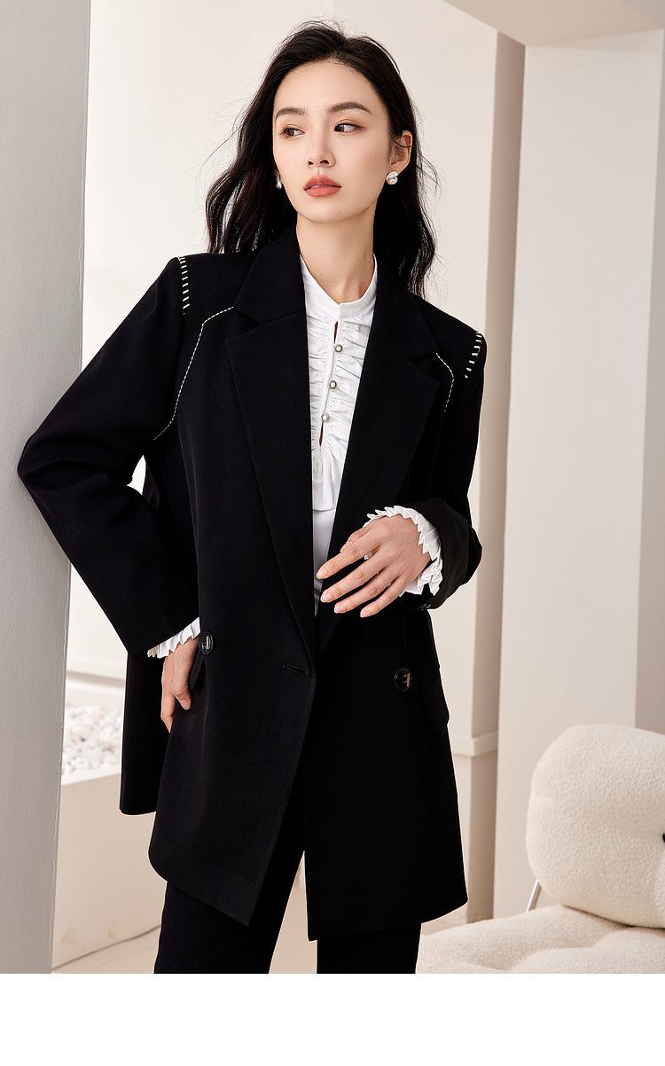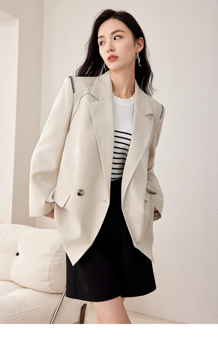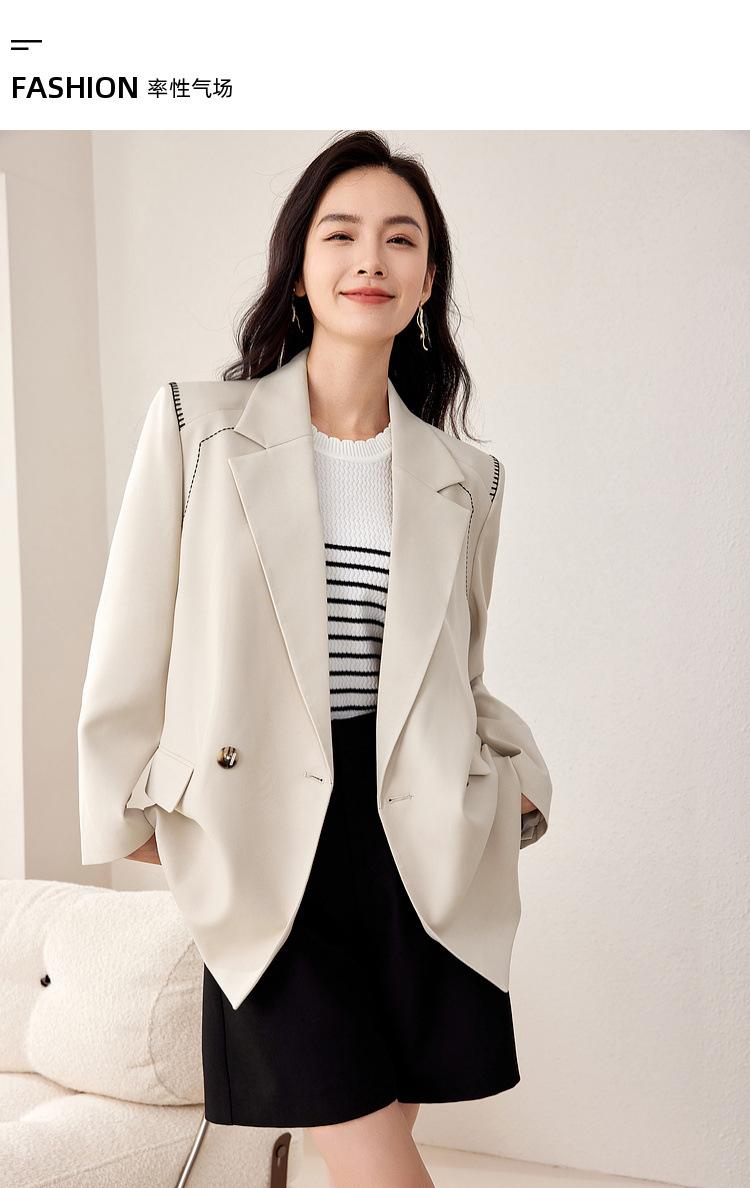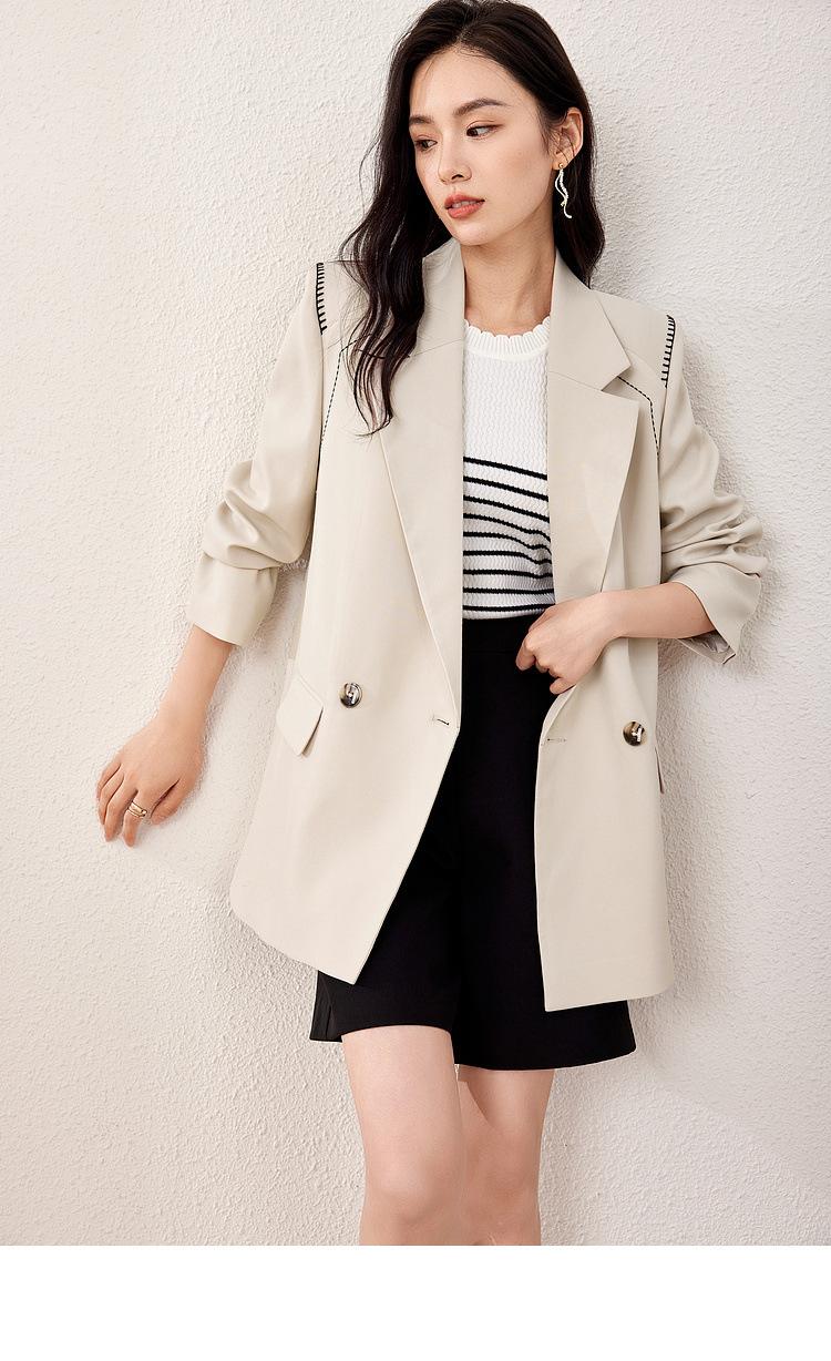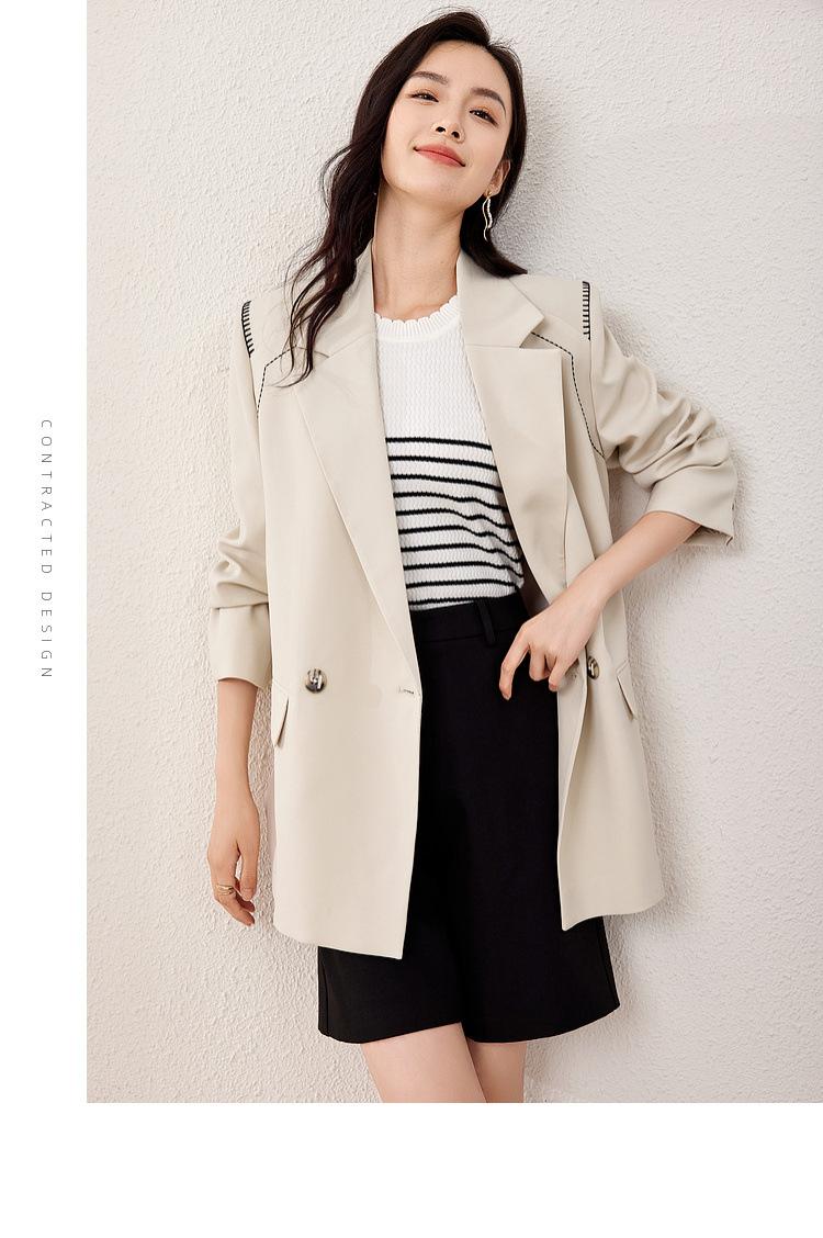 Zhenqi nuevo abrigo de traje de color sólido con cuello de solapa de moda para mujer, manga larga recta para el lugar de trabajo, traje pequeño K708
