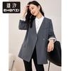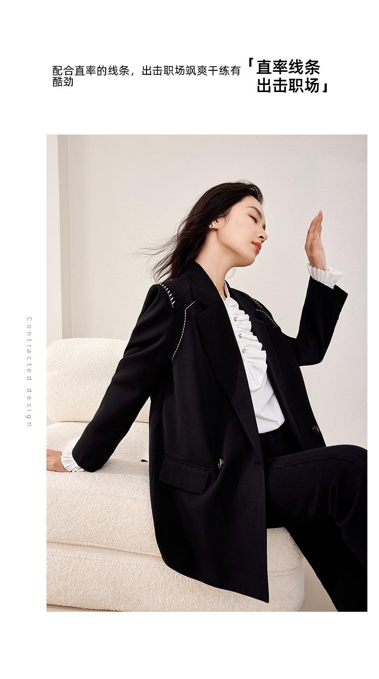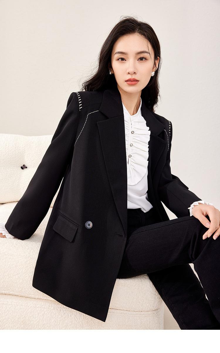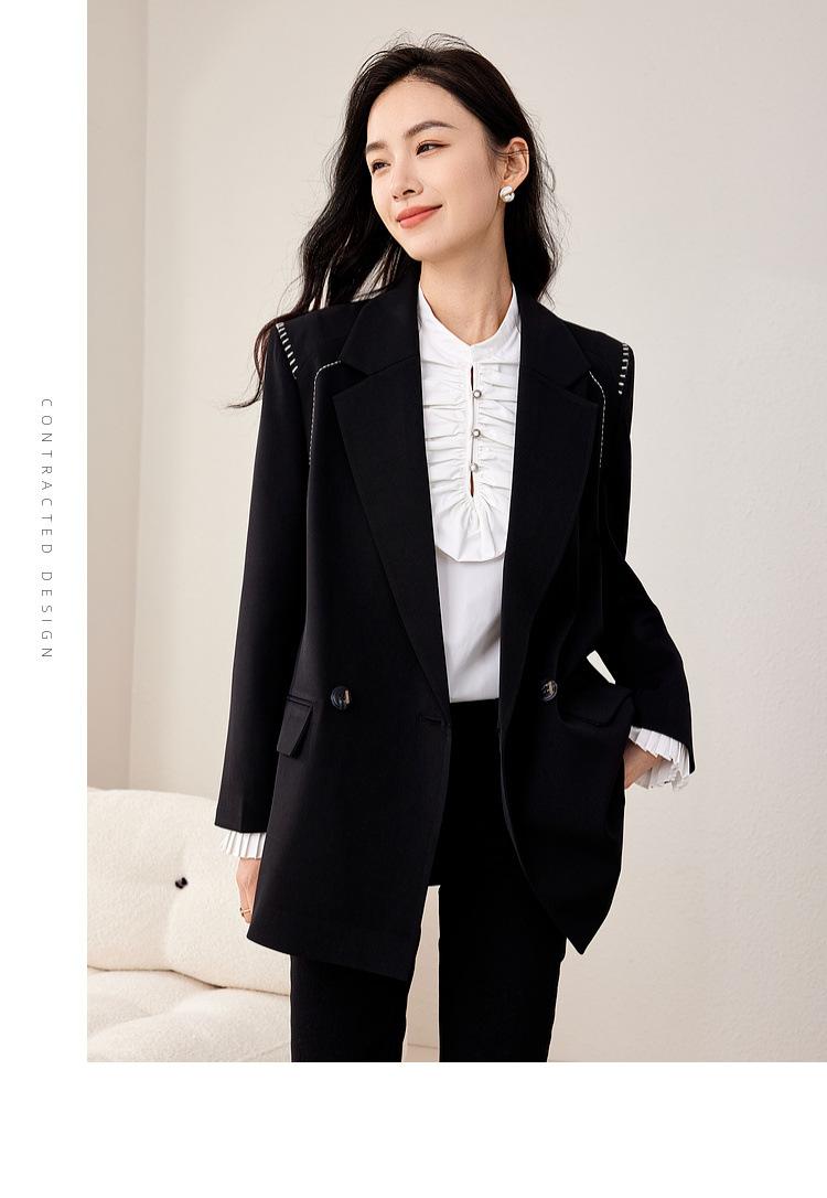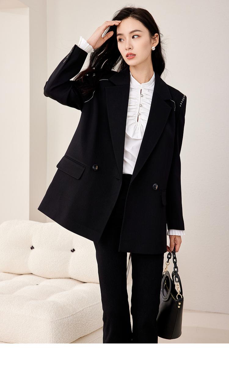 Zhenqi nuevo abrigo de traje de color sólido con cuello de solapa de moda para mujer, manga larga recta para el lugar de trabajo, traje pequeño K708