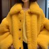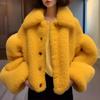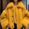 Abrigo Elegante Amarillo de Lana de Cordero Estilo Francés para Otoño e Invierno para Mujer, Chaqueta Corta de Forro Polar para Mujeres Petite