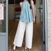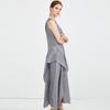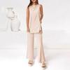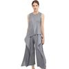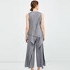 2025 Nuevo Verano Plisado Doble Capa Top Chaleco Casual Pantalones de Pierna Ancha Asimétrico Falso Dos Piezas Traje de Moda para Mujer
