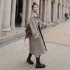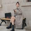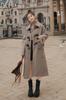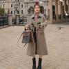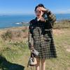 Abrigo de lana de cuadros vintage de tiro real para mujer de longitud media nuevo otoño e invierno 2024 versión coreana de abrigo de lana con botón de cuerno