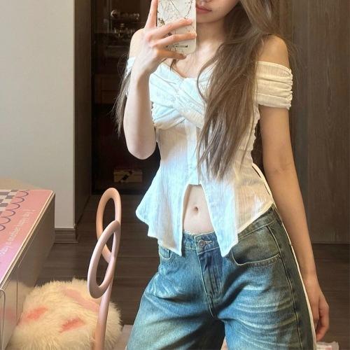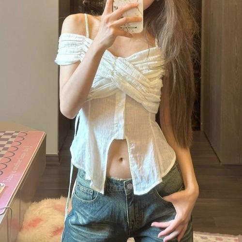 Deseo Puro Top de Un Hombro Diseño Nicho Mujer Chic Dulce Picante Moda Verano 2025 Nueva Camisa Corta