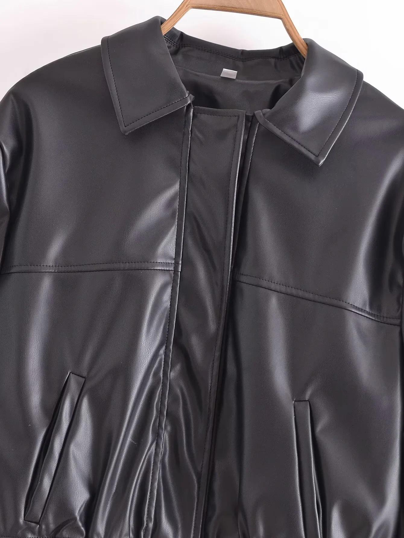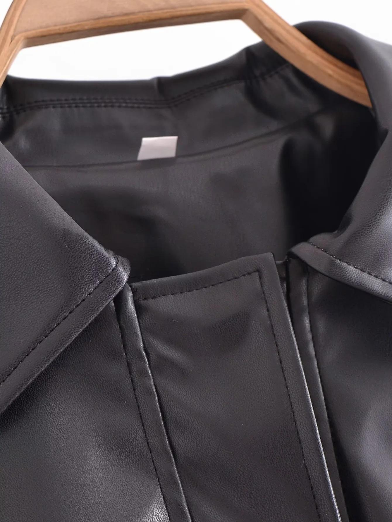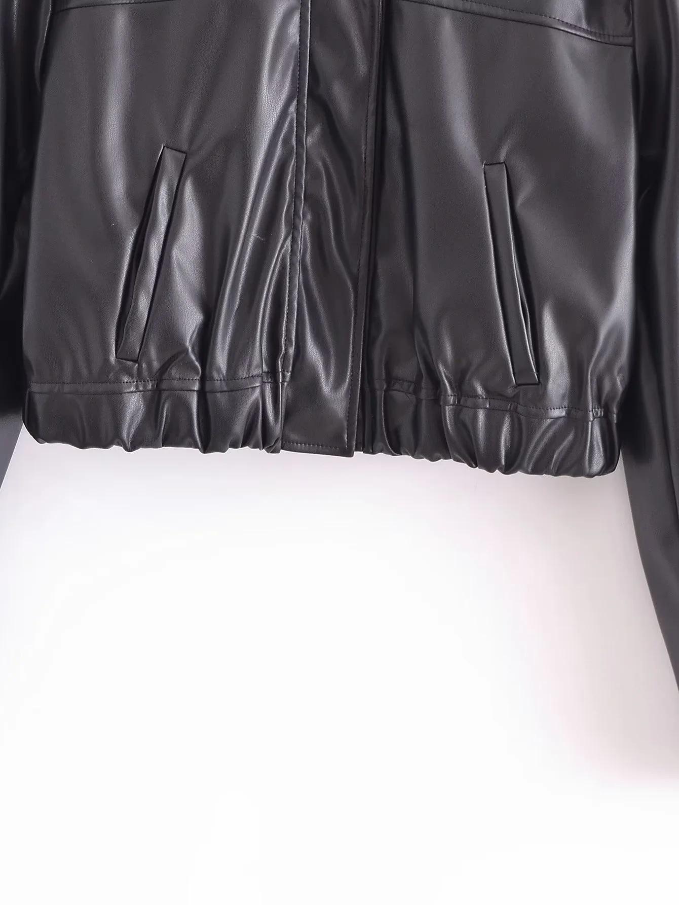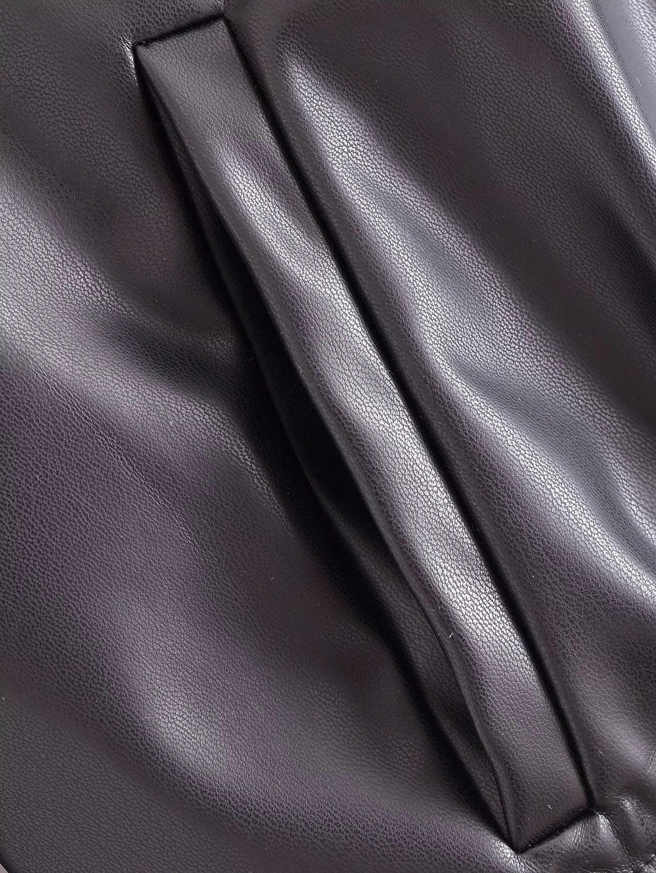 Ropa de mujer de estilo europeo y americano, solapa de moda francesa, hebilla oculta, dobladillo elástico, chaqueta de cuero sintético de primer plano, abrigo corto que combina con todo, moda