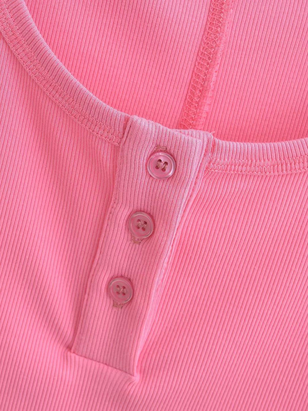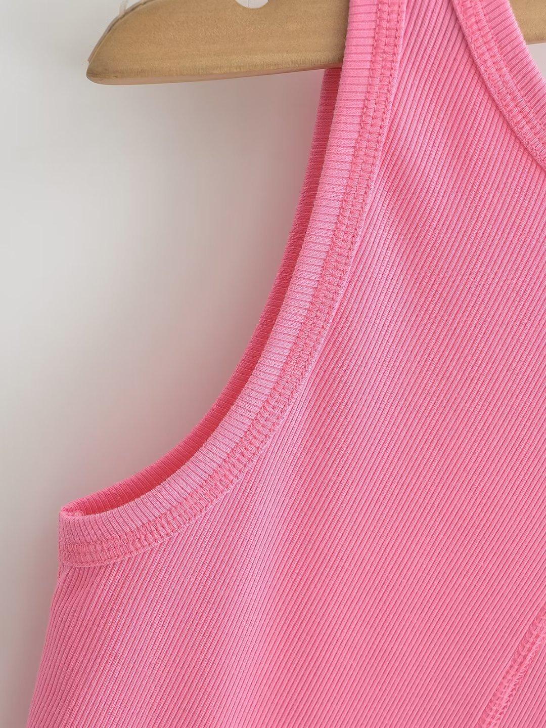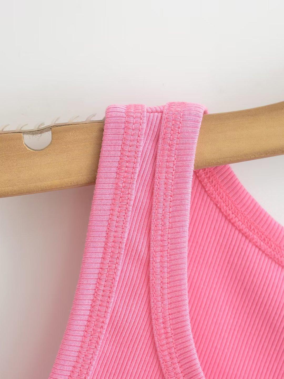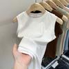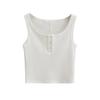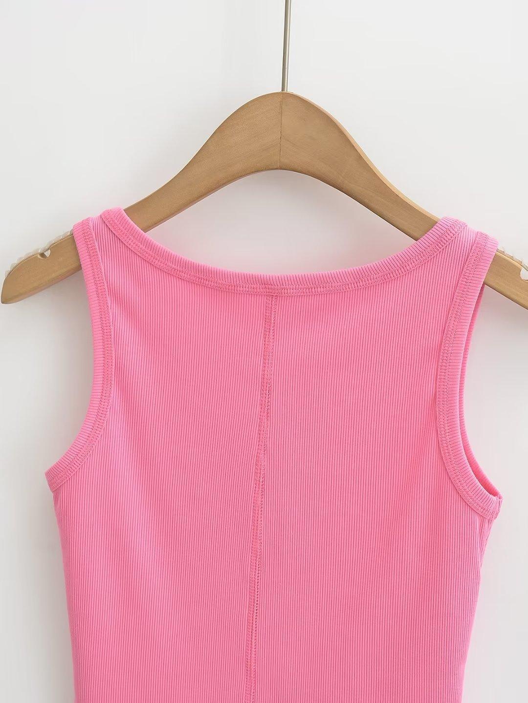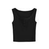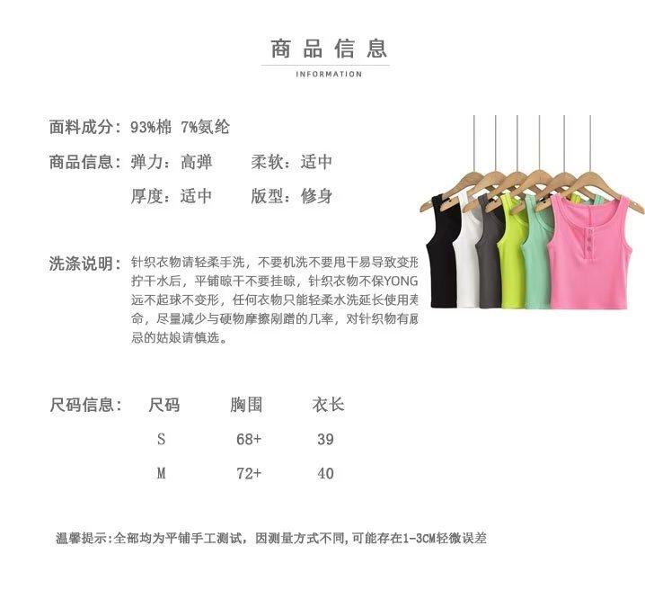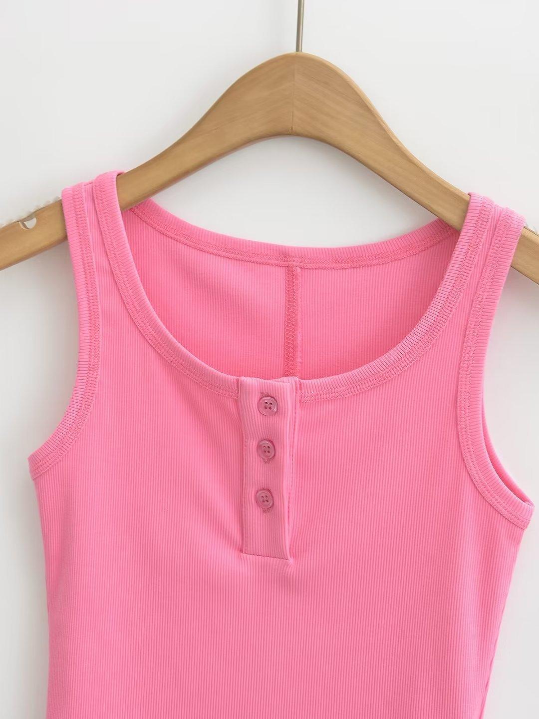 Camisola con botones estilo europeo y americano para mujer, novedad de verano 2023, color liso, sin mangas, corta.