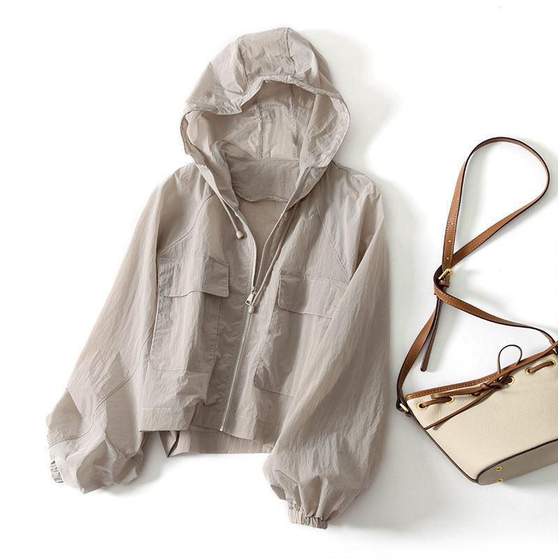 Chaqueta corta con capucha y protección solar, ligera, holgada, adelgazante, estilo occidental, estilo japonés, diseño informal, de moda, 24 unidades