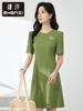 Zhen Xi - Vestido informal de manga corta con cuello redondo y cintura alta para mujer, diseño adelgazante, DP173