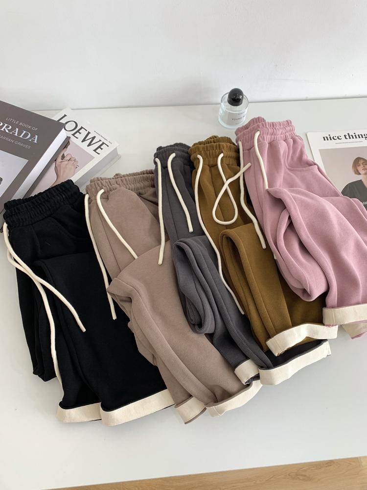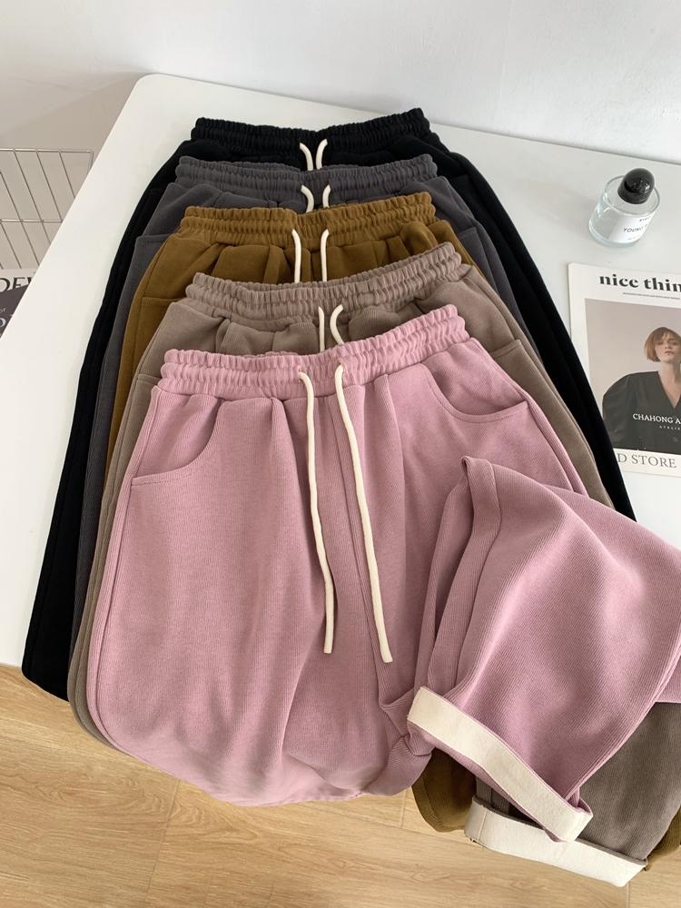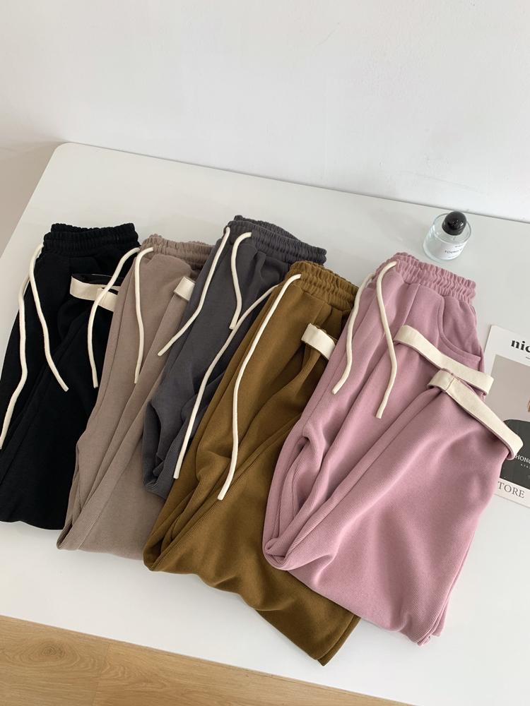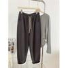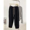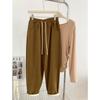Pantalones casuales con cordón de cintura alta y pequeños pliegues para mujer, otoño 2023, nuevos pantalones deportivos holgados y adelgazantes, pantalones de moda para abuela