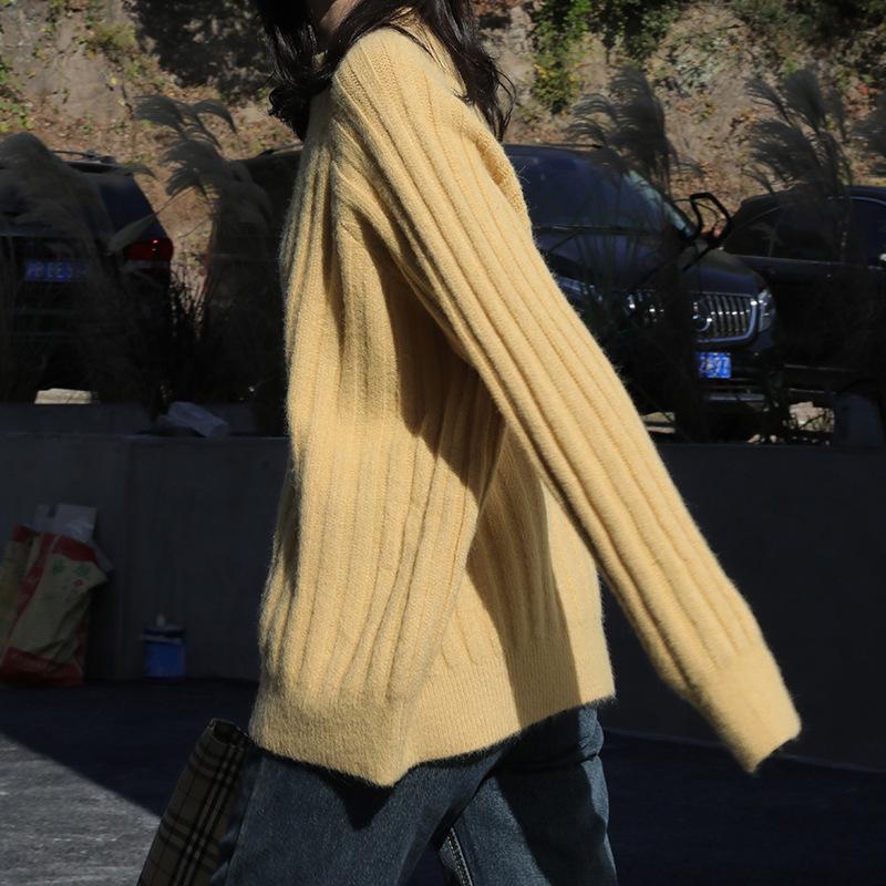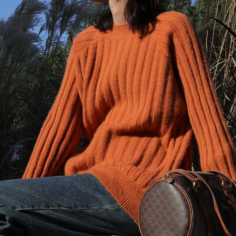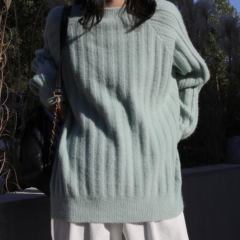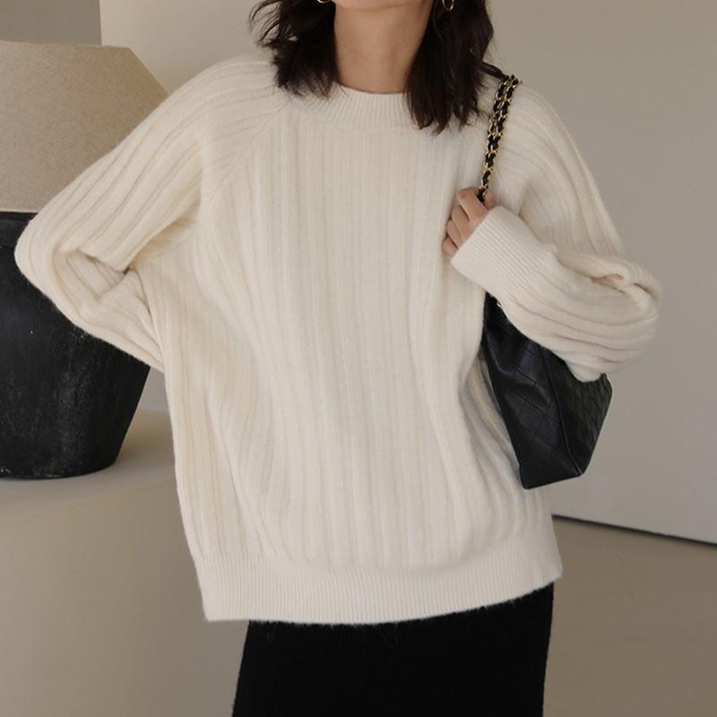 Suéter Suave y Ceroso 2024 Nuevo para Mujer Otoño e Invierno Cuello Redondo Holgado de Punto para Fondo con Mangas Largas